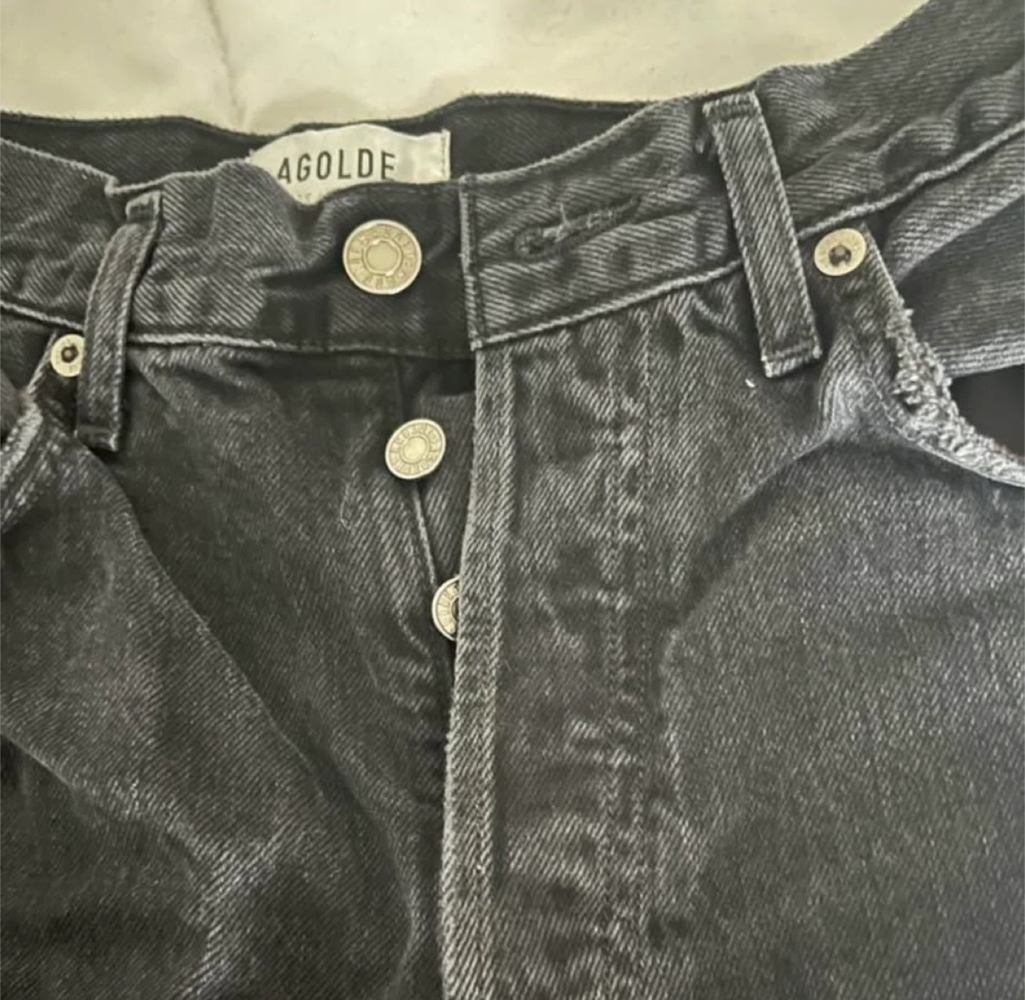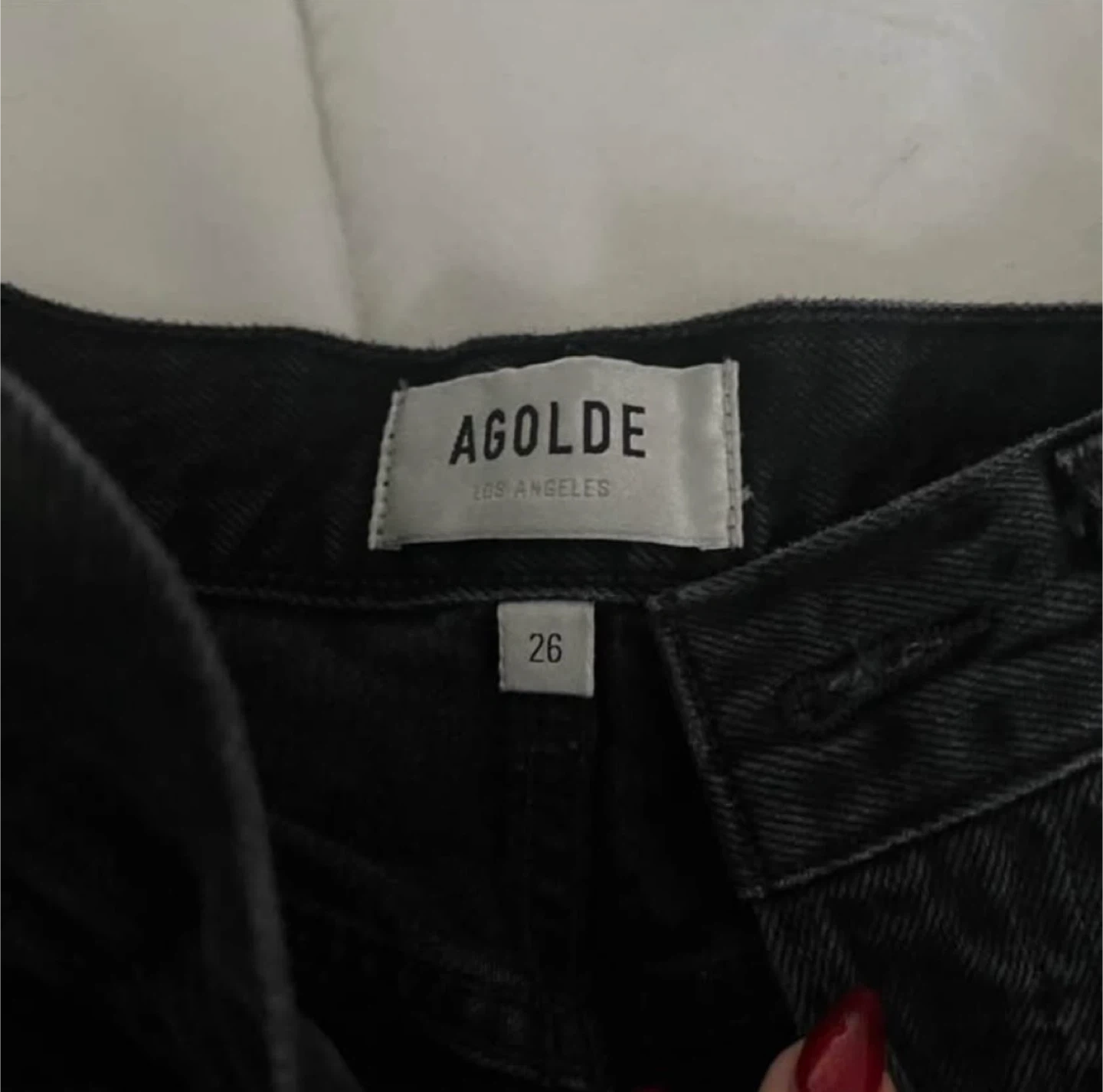 Selling a pair of AGOLDE denim jeans in black. They're a size 26 and have a stylish, slightly distressed look. Perfect for adding a bit of edge to your wardrobe!