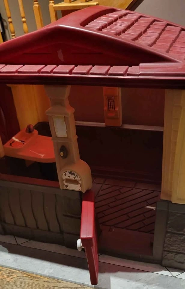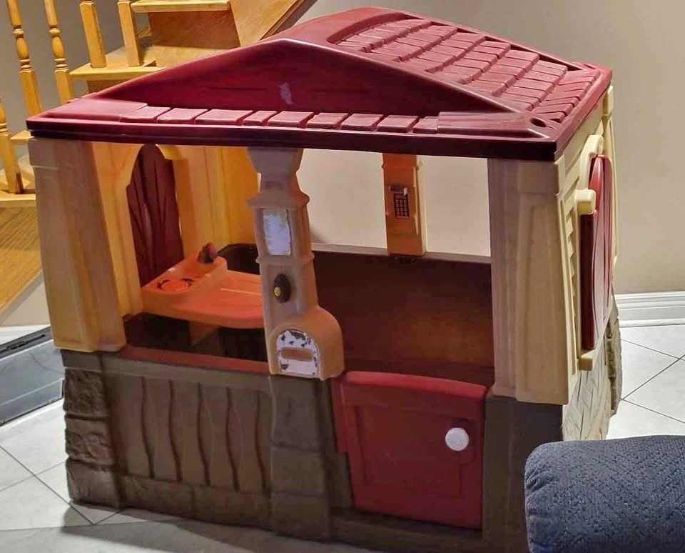 Currently dismantled as I needed to make space in the house for our Christmas tree. My son has outgrown this and no longer uses it. This playhouse was previously purchased through marketplace from other seller. This playhouse was never used or kept outside. This was strictly an indoor playhouse. Doorbell no longer works. Pick up in Scarborough by Birchmount and Danforth Ave.