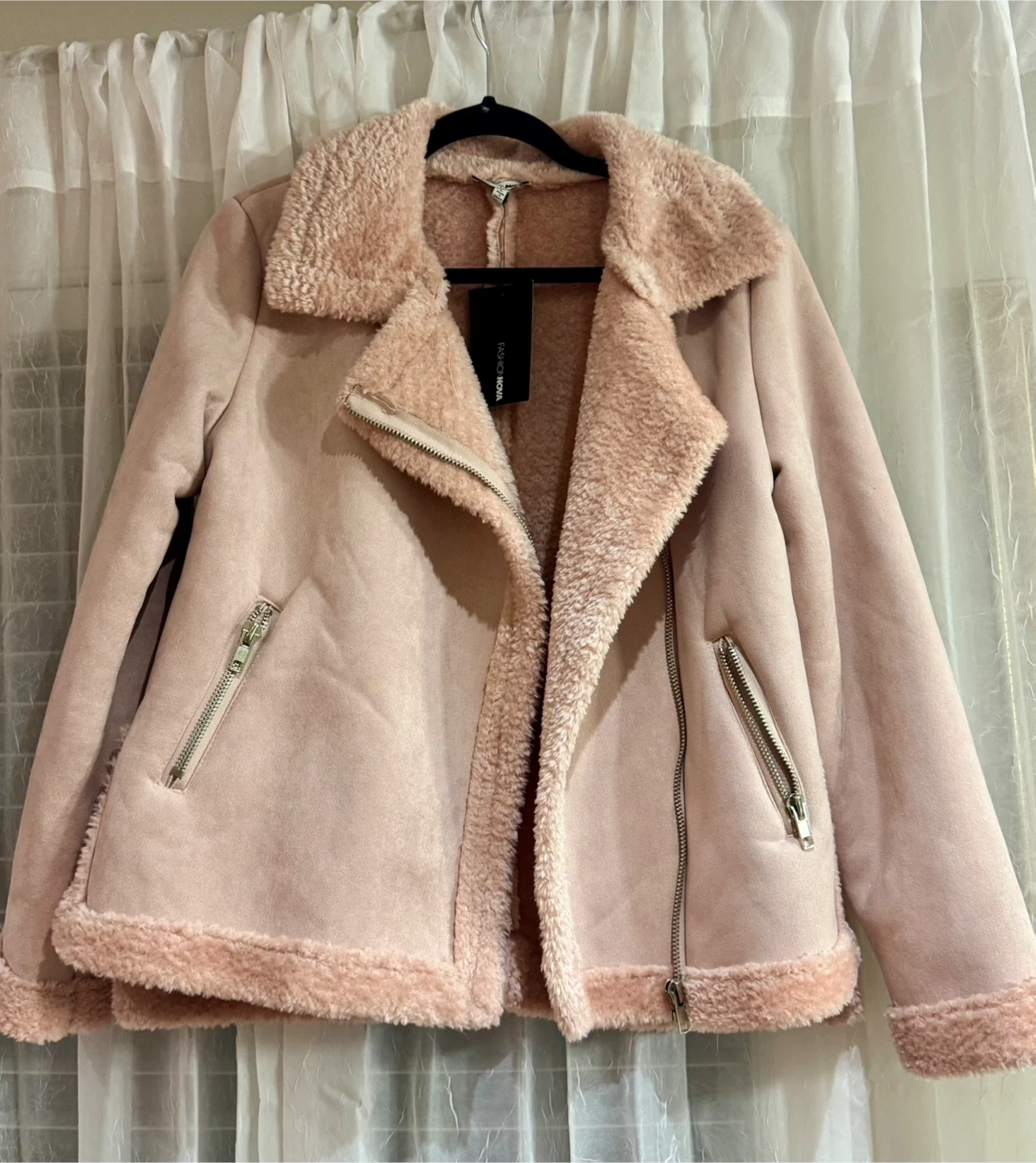 Fashion Nova Pink Faux Suede Aviator Jacket