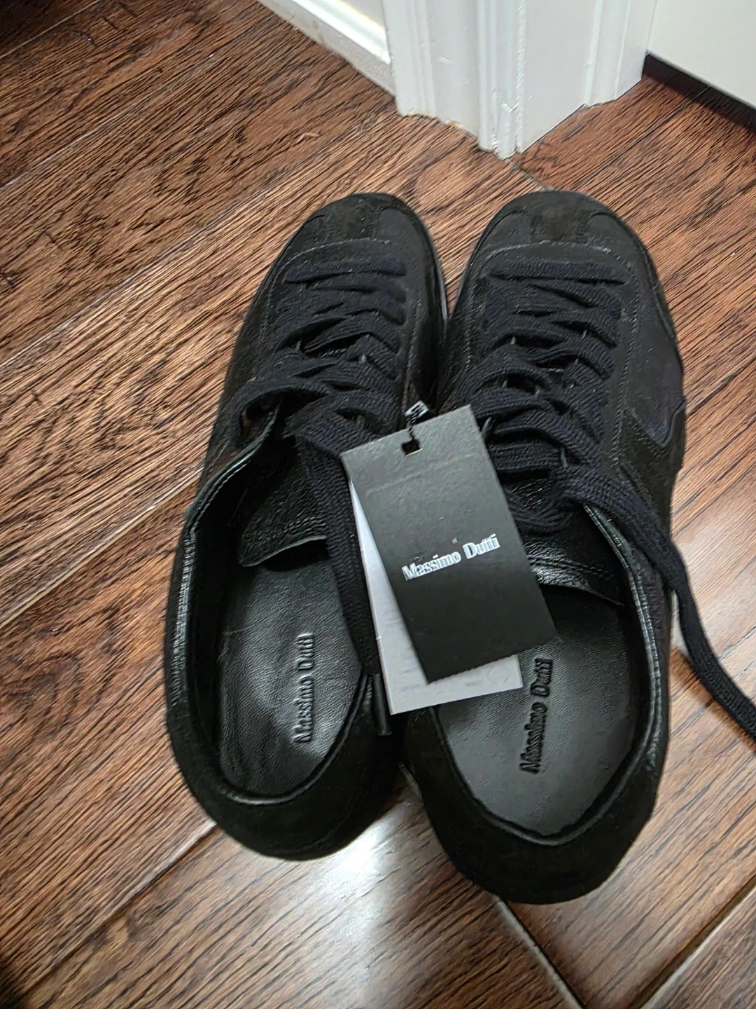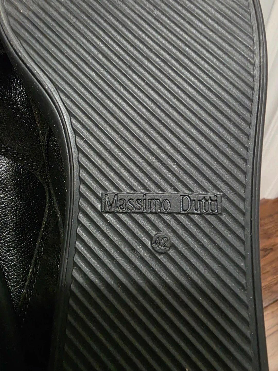 Selling a pair of Massimo Dutti sneakers in black leather. They are in new condition and a European size 42. Perfect for a casual look!