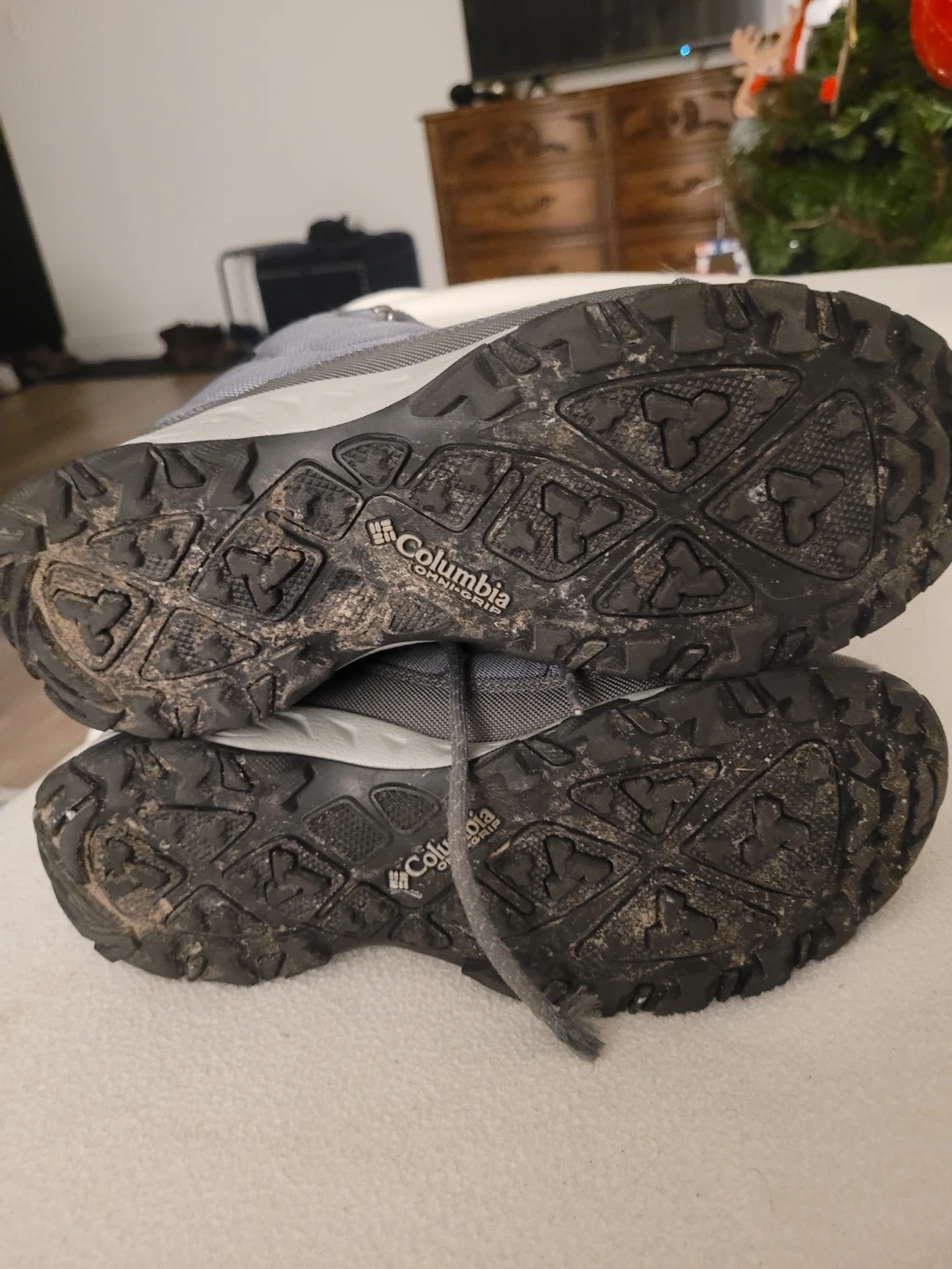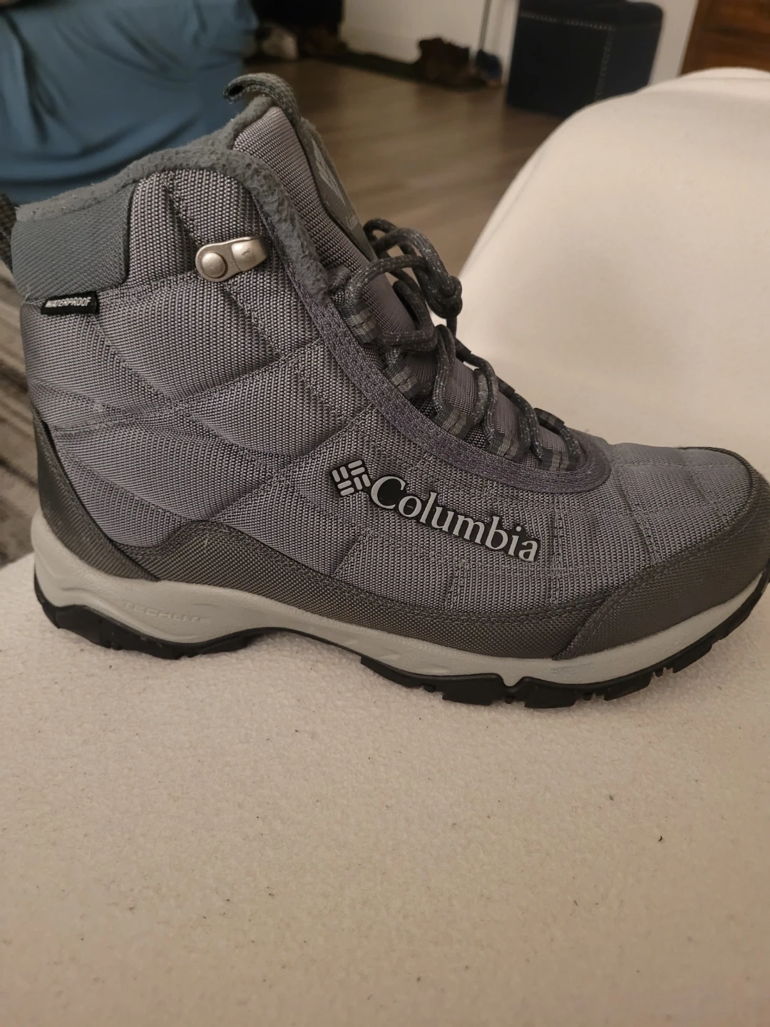 Selling a pair of Columbia waterproof winter boots in grey! They have some wear on the soles, but still have lots of life left in them. Perfect for staying warm and dry this winter season!