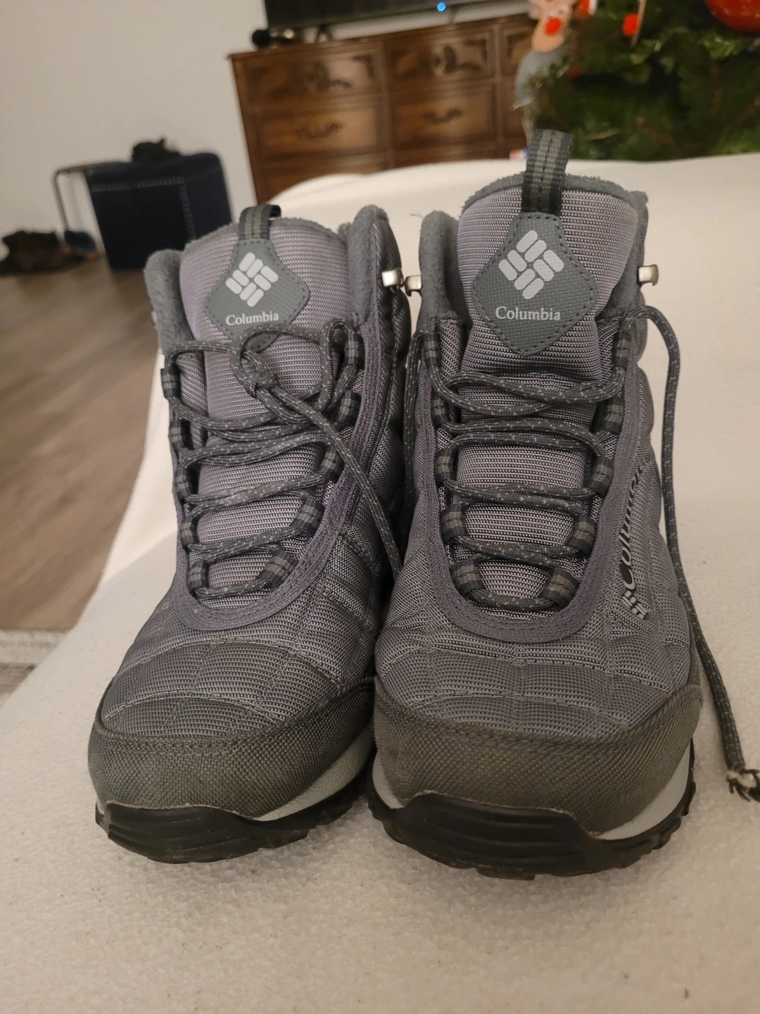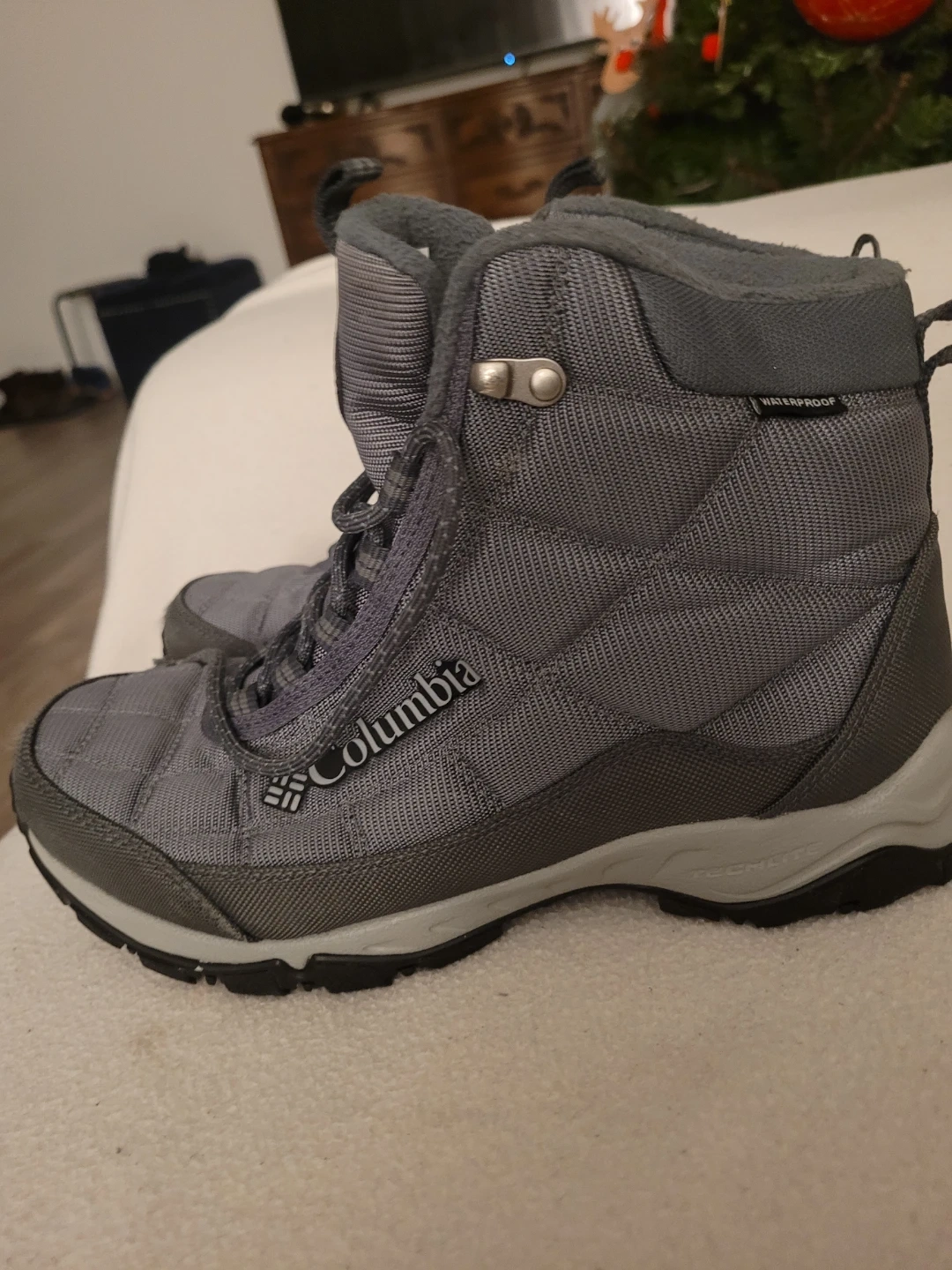 Selling a pair of Columbia waterproof winter boots in grey! They have some wear on the soles, but still have lots of life left in them. Perfect for staying warm and dry this winter season!