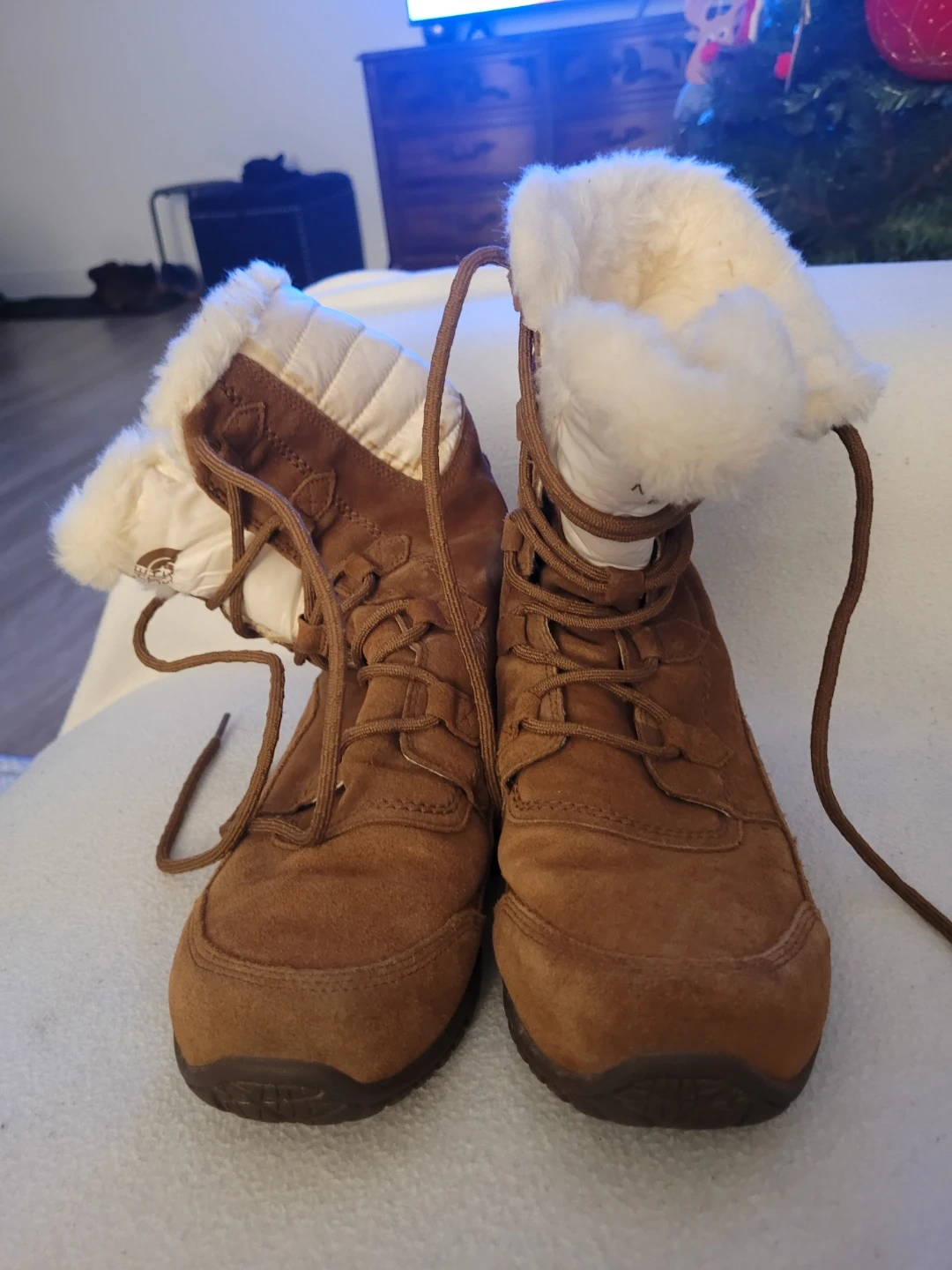 Cozy brown The North Face winter boots! They're perfect for keeping your feet warm and dry during the cold Canadian months. These boots are in great condition and ready for their next adventure.