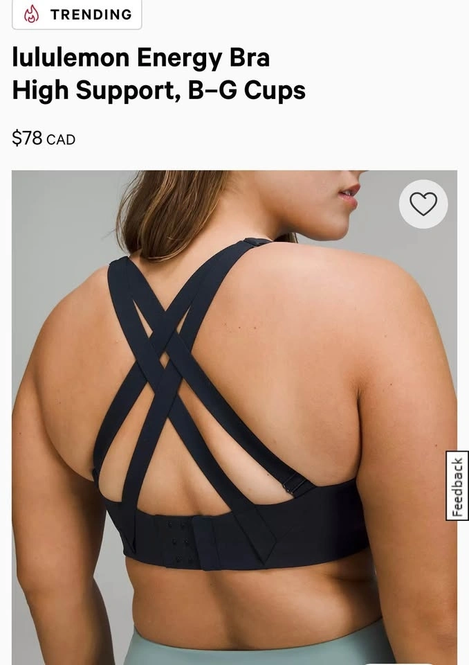 Buy & SellLululemon sports braLululemon sports bra$50This sports bra is used but in good condition. 34DD. Blue colour. Retails for over $80. Criss cross and clasp in back!WHERE TO MEETCheck LocationView MapSELLERElizabetLiberty Village342 reviews0 chats·0 favorites·11 viewsSEND CHAT TO SELLERHi Elizabet! I’m interested in your listing.Hi Elizabet! I’m interested in your listing.Get the Karrot app to chatSign In to chat