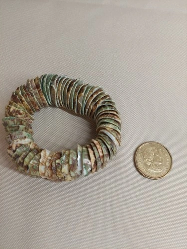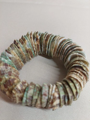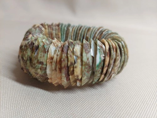 Natural Shell Stretch Bracelet – Green Brown Shell Discs – Beach