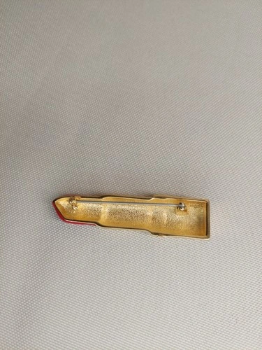This gold-tone novelty pin features a classic red lipstick design and is a perfect statement piece for lovers of vintage fashion, makeup themes, or quirky costume jewelry.