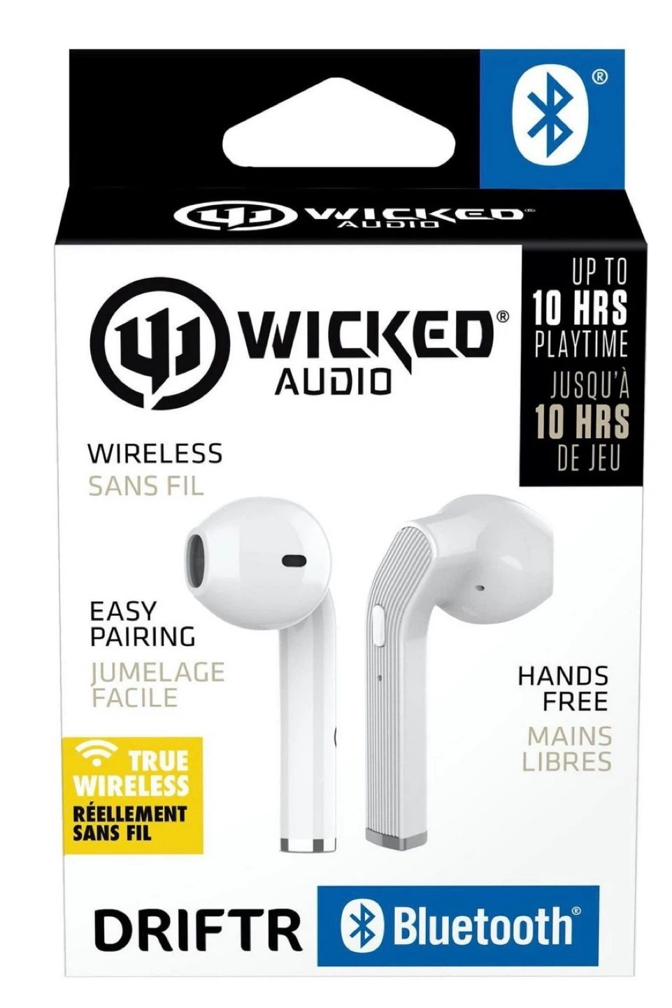 Selling a pair of Wicked Audio Driftr wireless earbuds in white! They offer up to 10 hours of playtime and feature easy pairing. These earbuds are true wireless and hands-free. The box is included!