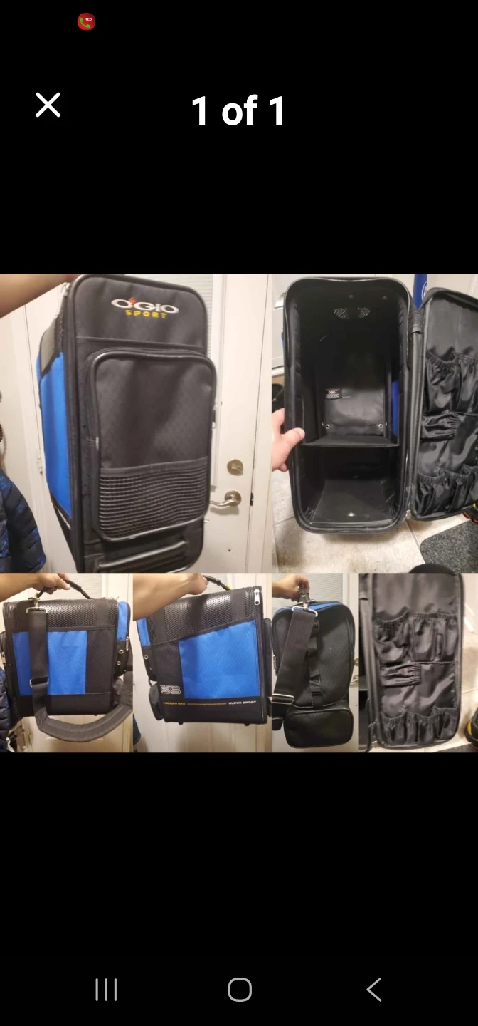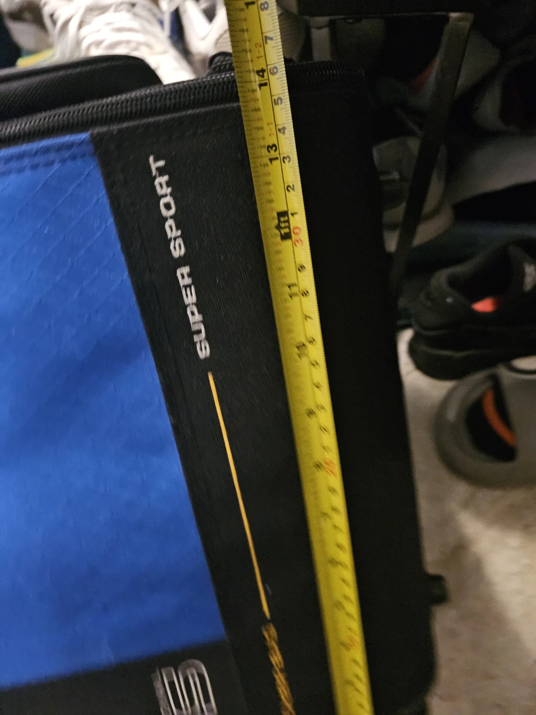 Selling an Ogio Sport Super Sport golf travel bag in good condition! The bag is black and blue and measures approximately 15 inches in height and 14 inches in width.