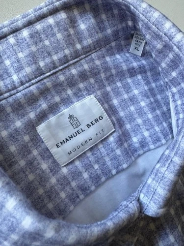 Emanuel Berg Byron M\[é]lange 4-Flex Dress Shirt offers a blend of sophistication and comfort. Available in lavender, this shirt is tailored to a modern fit with a sharp collared neckline and long sleeves that end in barrel cuffs. The size 17.5 neck shirt is designed to provide a regular fit. The shirt is constructed from 89% Cotton, 11% Elastane, ensuring durability and ease of care. Its versatile design is ideal for various occasions. I lost 40kg and barely wore this shirt along with other Emanuel Bergs shirts. Let me know if you have any questions!