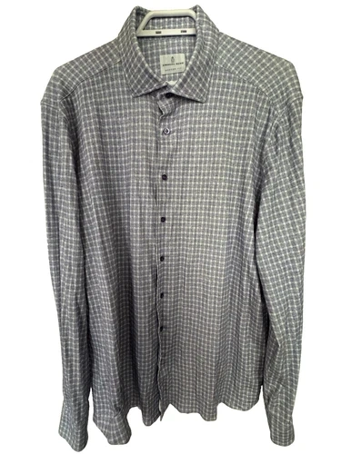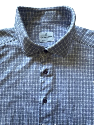 Emanuel Berg Byron M\[é]lange 4-Flex Dress Shirt offers a blend of sophistication and comfort. Available in lavender, this shirt is tailored to a modern fit with a sharp collared neckline and long sleeves that end in barrel cuffs. The size 17.5 neck shirt is designed to provide a regular fit. The shirt is constructed from 89% Cotton, 11% Elastane, ensuring durability and ease of care. Its versatile design is ideal for various occasions. I lost 40kg and barely wore this shirt along with other Emanuel Bergs shirts. Let me know if you have any questions!