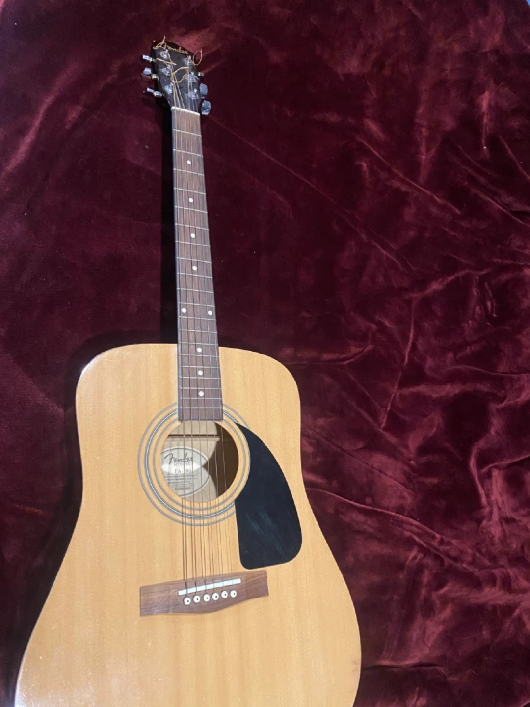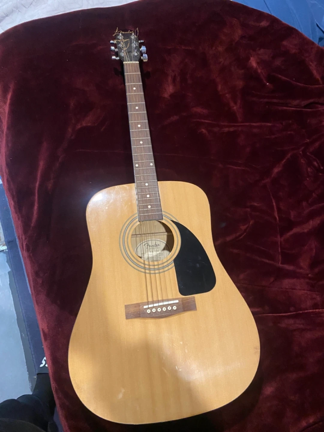 Selling a Fender acoustic guitar. It's in good condition and ready for a new player! It has a classic look and sound that's great for beginners or experienced guitarists alike