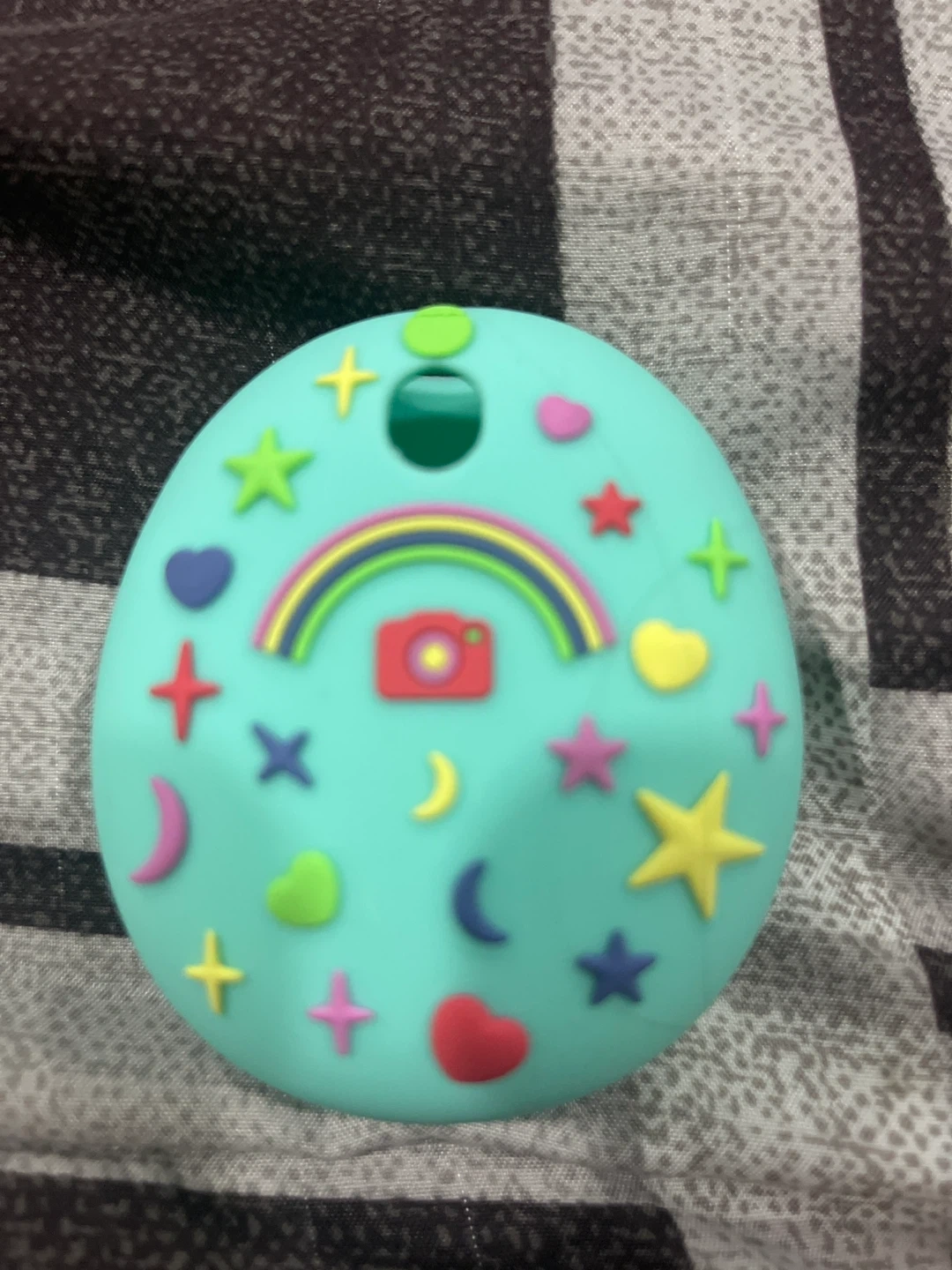 Selling a JCHPINE phone charm and holder! It's in great condition and features a fun design with stars, hearts, a rainbow, and a camera. It's a cute way to add some personality to your phone and keep it secure