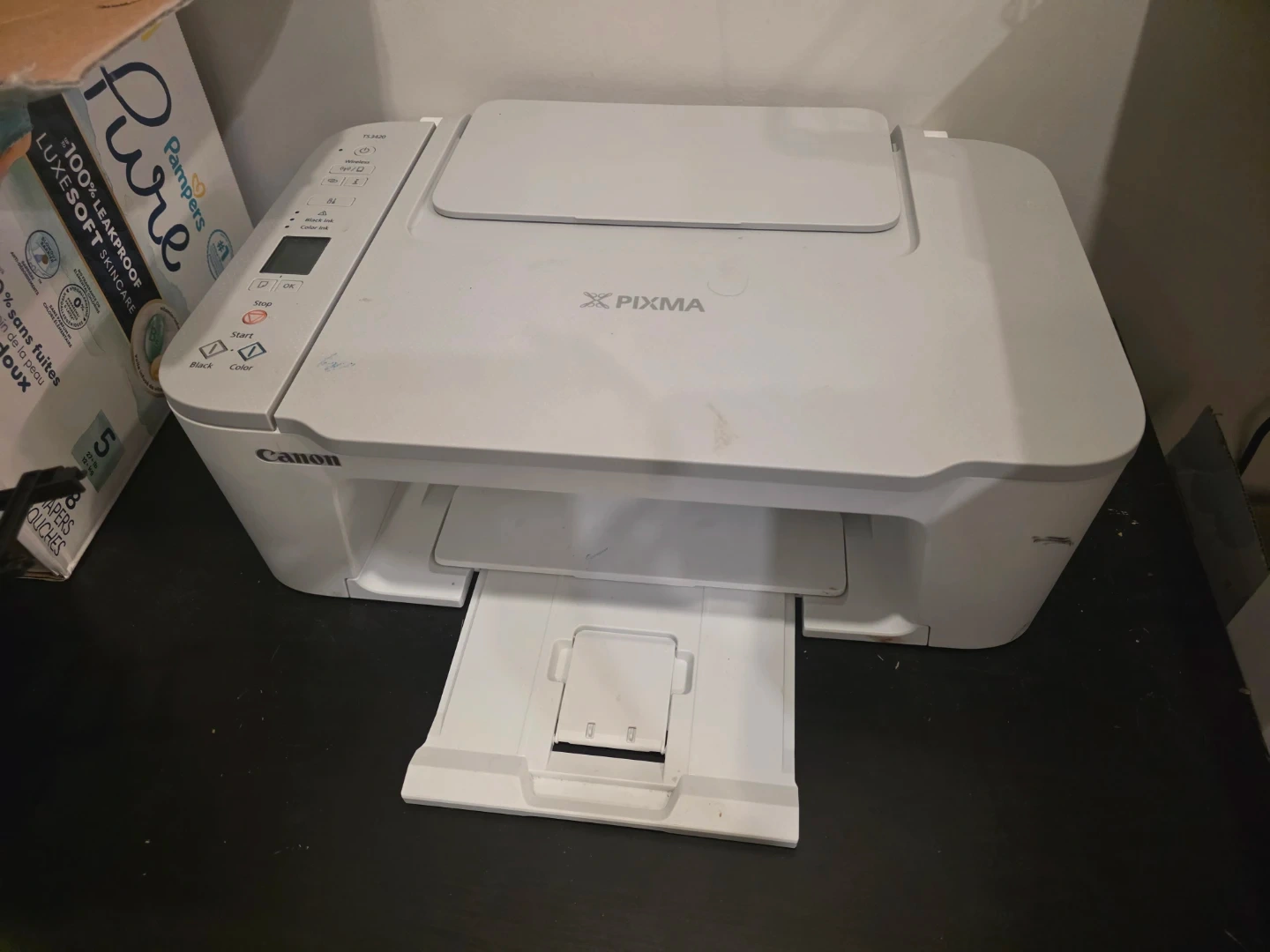 Selling a Canon PIXMA TS6020 printer. It's in great shape and ready to go! Perfect for home or office use. Get your printing needs sorted with this reliable printer. It works well need ink or new cartridge