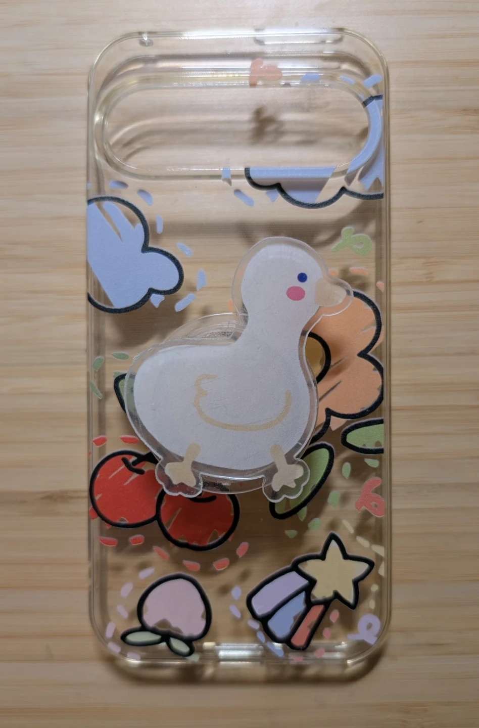 Selling a super cute phone case with adorable duck and flower designs! The duck on the back is a built in popsocket. This is a transparent phone case. This phone case is perfect for phone models like pixel 9