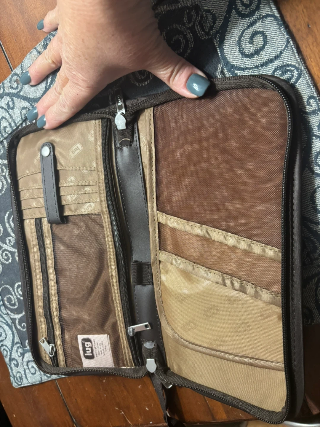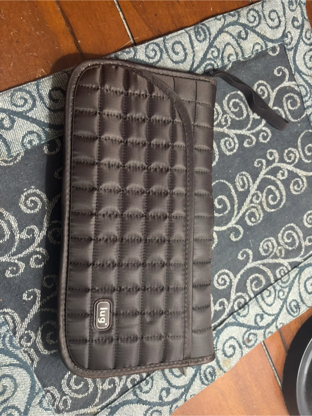 Lug travel wallet in brown with a quilted exterior. It's perfect for keeping your travel documents and essentials organized! Like new
