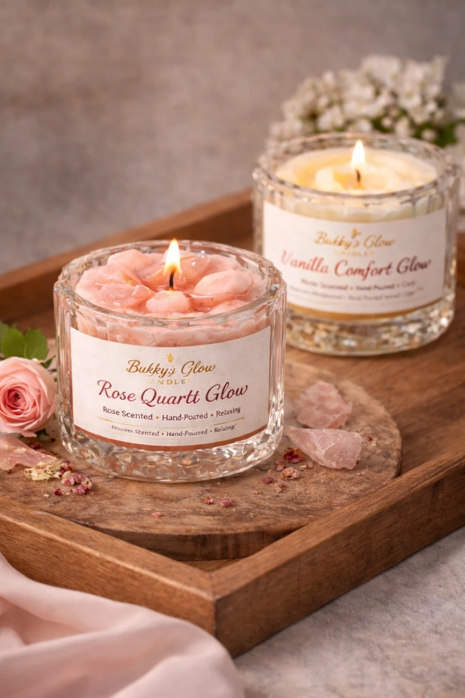 Bukky's Glow Candles - Rose Quartt Glow & Vanilla Comfort Glow