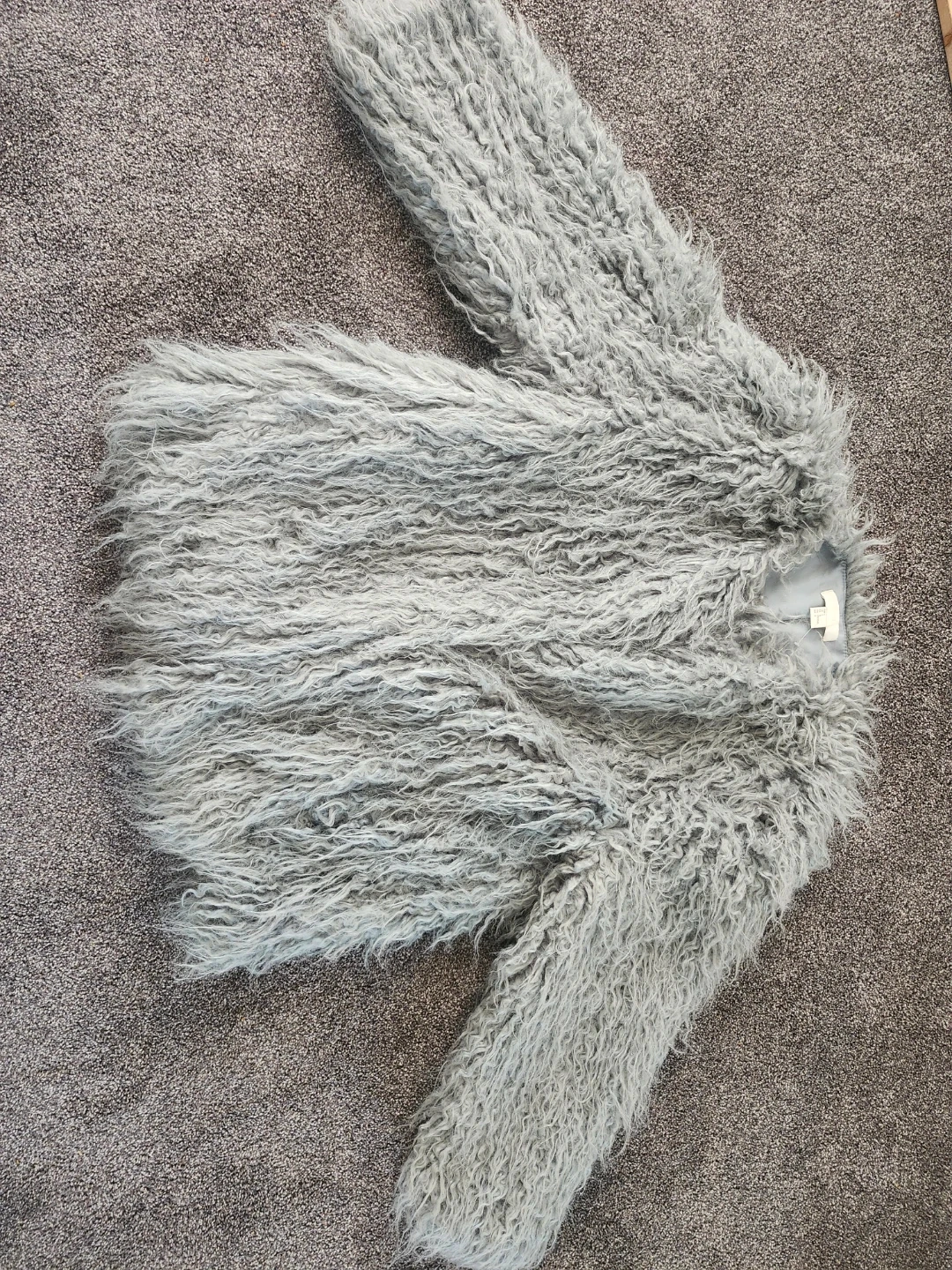 H&M Grey Faux Fur Jacket - Size L