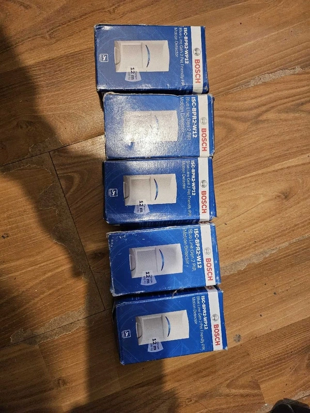 I'm offering a set of new Bosch ISC-BPR2-WP12 Blue Line Gen2 pet-friendly PIR motion detectors, ensuring reliable and accurate motion detection for your security system. Key features include: - Pet-friendly technology to avoid false alarms - Blue Line Gen2 technology for enhanced detection - 12m detection range. Let me know if you're interested!