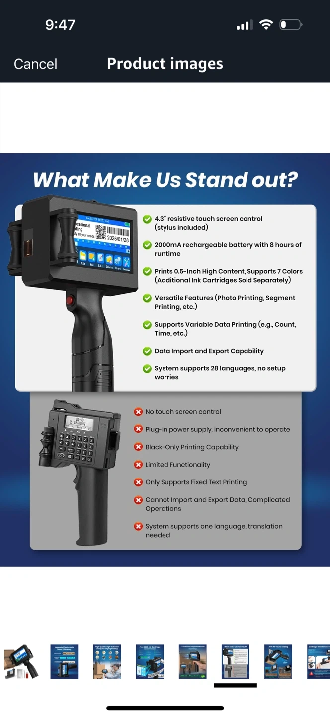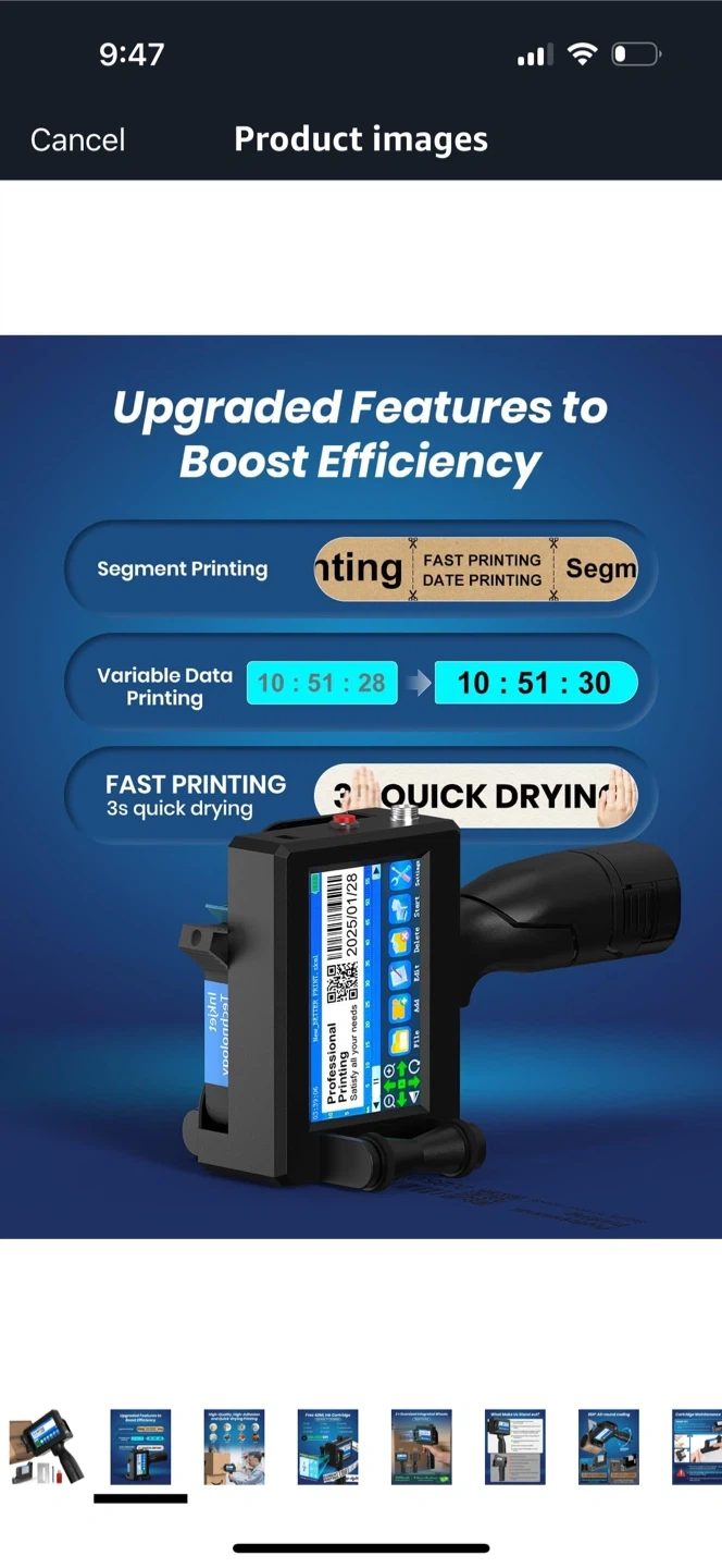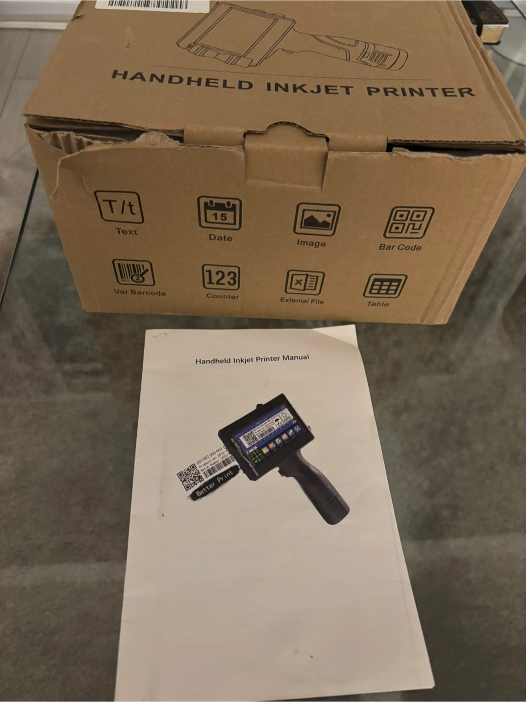 Selling a handheld inkjet printer. It comes with the box and manual. The dimensions of the box are 252*173*139 mm. Perfect for printing on various surfaces like metal, wood, glass, cloth, and carton!