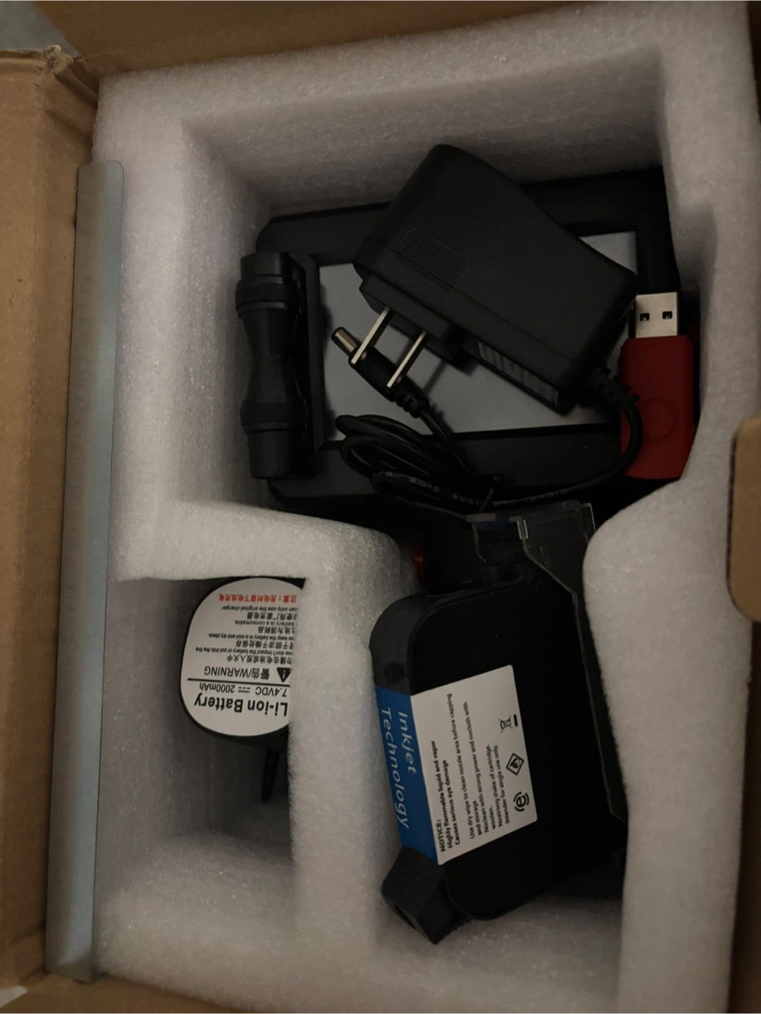 Selling a handheld inkjet printer. It comes with the box and manual. The dimensions of the box are 252*173*139 mm. Perfect for printing on various surfaces like metal, wood, glass, cloth, and carton!