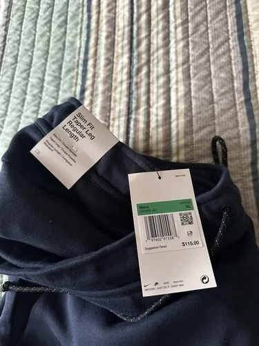 The product is a pair of NWT Nike Tech Fleece Joggers in Obsidian Black, Men's Size XL. These joggers feature a drawstring closure, a cotton blend material with fleece fabric type, and are designed for athleisure activities. Made by Nike, they are part of the Nike Tech Fleece product line and come in a regular fit style. The joggers are perfect for activewear occasions and are a stylish addition to any man's wardrobe, ideal for both comfort and performance. NWT never worn