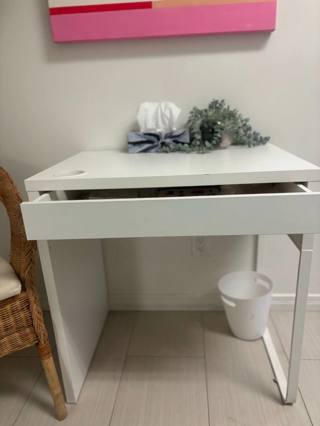 Buy & SellWhite IKEA Desk with DrawerWhite IKEA Desk with Drawer$50Small white desk. One drawer. Minimalist design. Good for small spaces.ConditionLike newDimensions29w 20d 29h (inches)WHERE TO MEETCheck LocationView MapSELLERFlorianBloor Annex261 review42 chats·16 favorites·538 viewsSEND CHAT TO SELLERHi Florian! I’m interested in your listing.