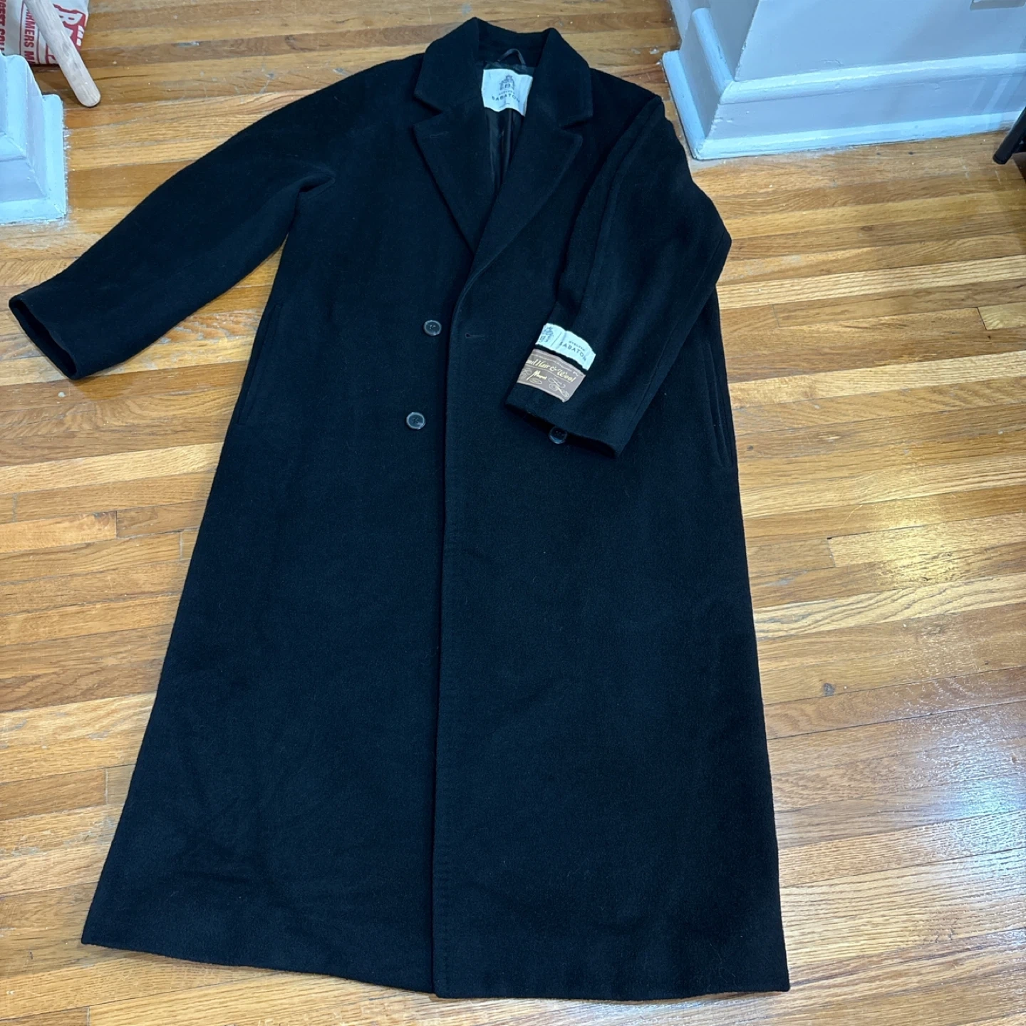 Classic black Aritzia overcoat in great condition! This timeless piece is made from a warm wool blend, perfect for staying stylish and cozy during the colder months. It is a sophisticated and versatile addition to any wardrobe!
