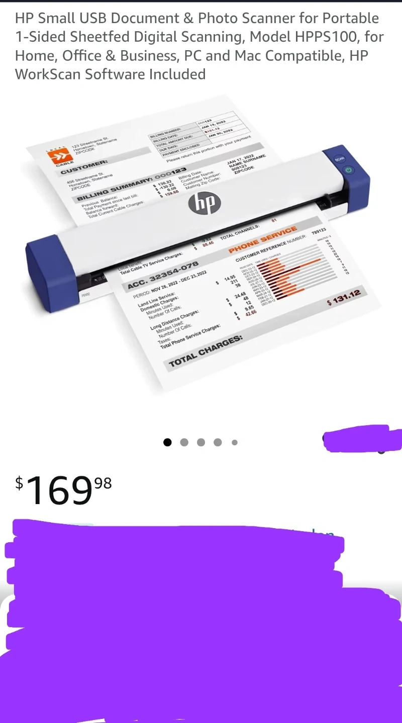 HP Small USB Document & Photo Scanner for Portable 1-Sided Sheetfed Digital Scanning, Model HPPS100, for Home, Office & Business, PC and Mac Compatible, HP WorkScan Software Included pick up Edmonton Clareview cash no transfers.