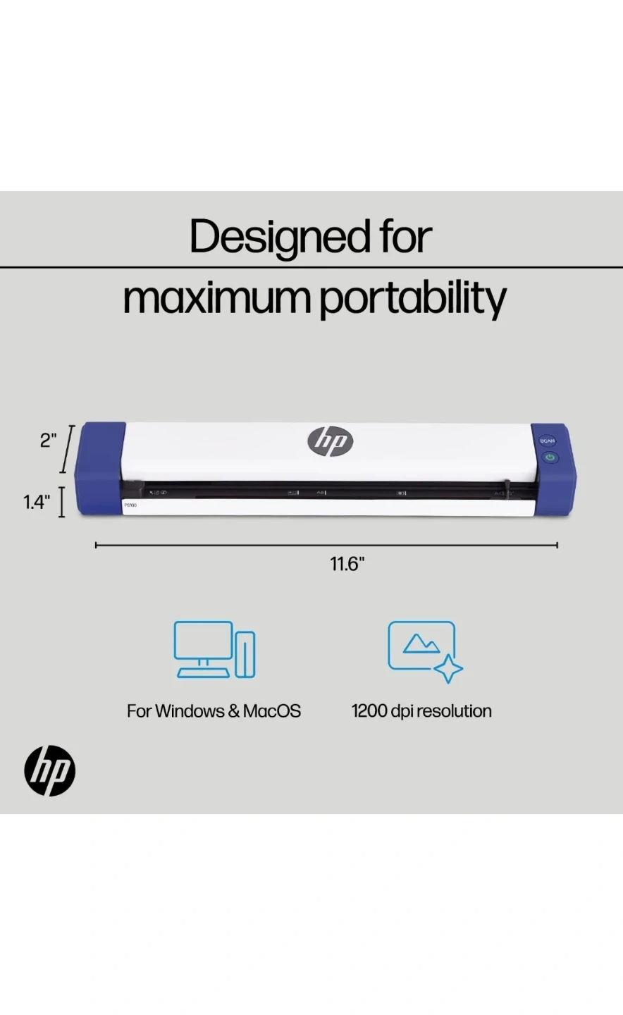 HP Small USB Document & Photo Scanner for Portable 1-Sided Sheetfed Digital Scanning, Model HPPS100, for Home, Office & Business, PC and Mac Compatible, HP WorkScan Software Included pick up Edmonton Clareview cash no transfers.