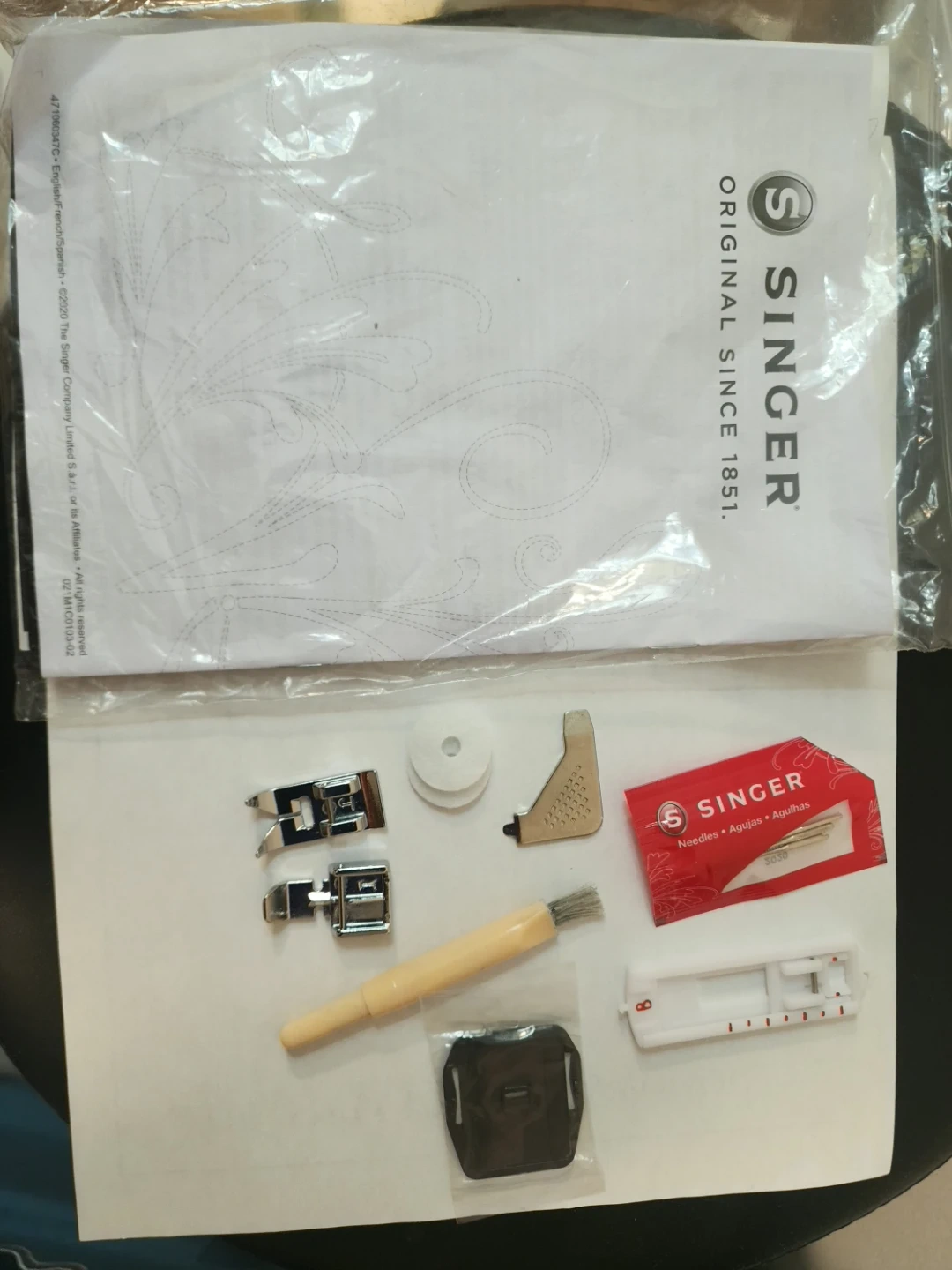 Includes original foot pedal, manual and accessories.