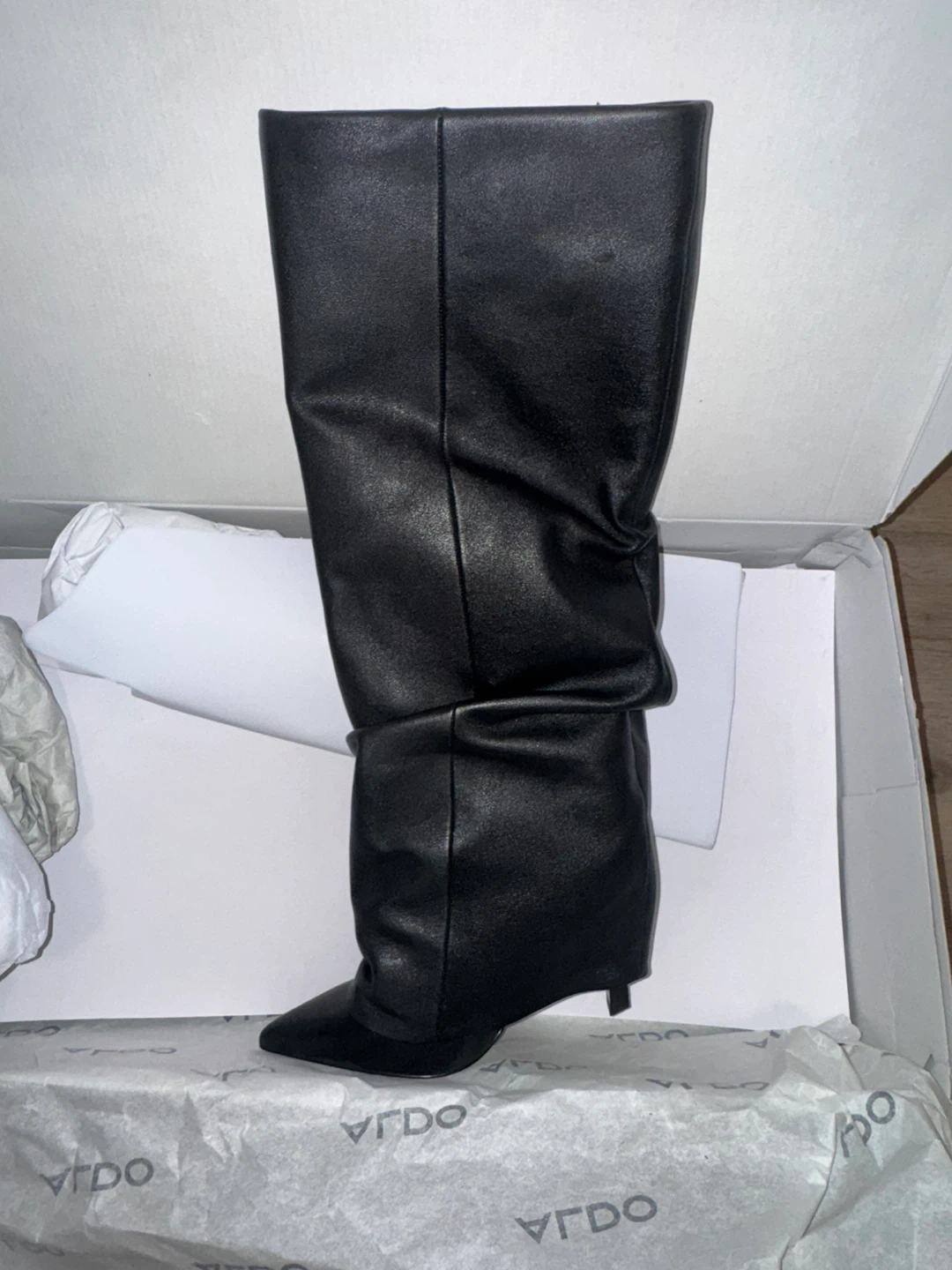 Selling a pair of ALDO Enalavia boots in black leather, size 6.5. They're in great condition and come in the original box. Originally bought for $180!