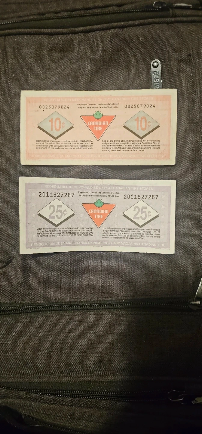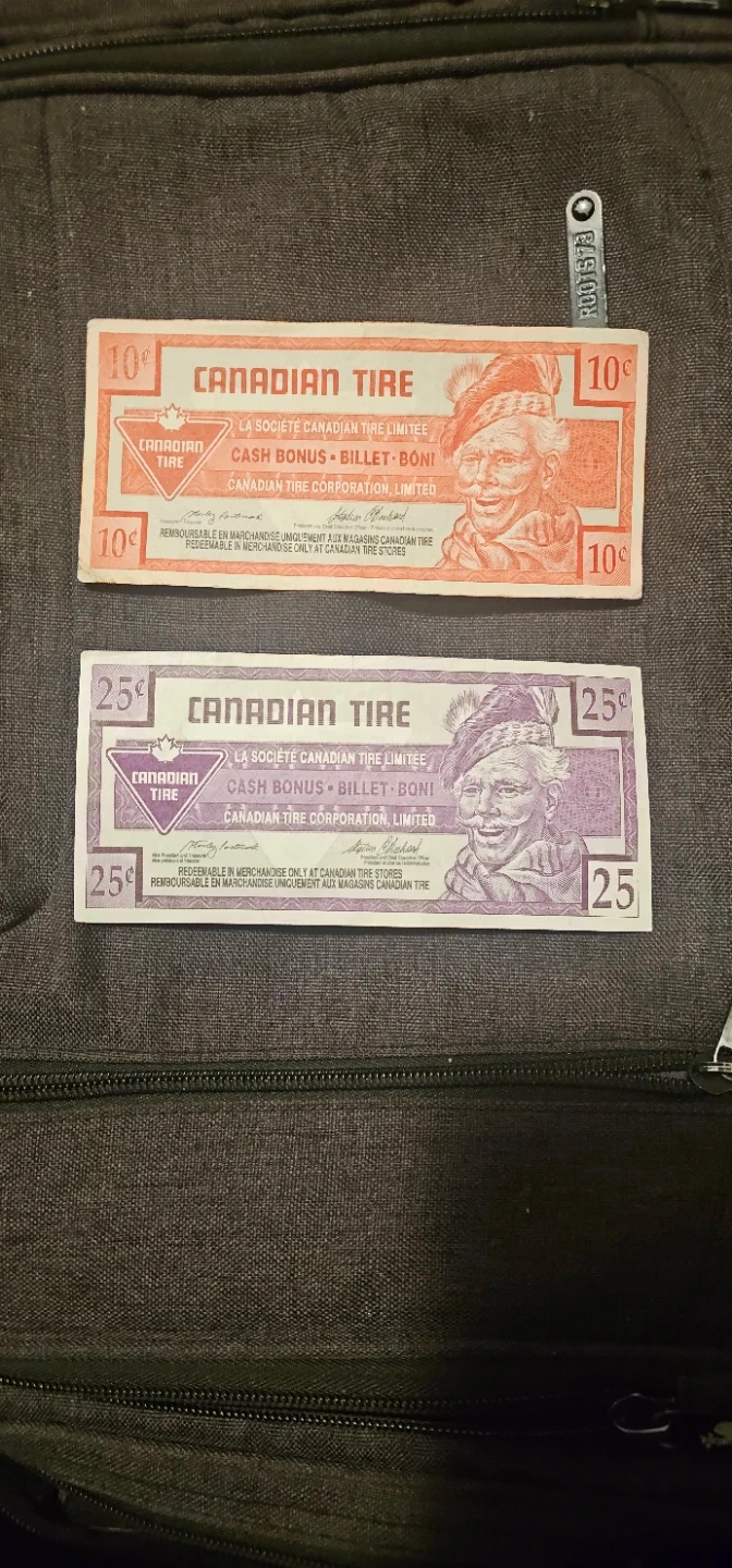Buy & SellCanadian Tire Money 1992 10¢ and 1996 25¢ Cash Bonus CouponsCanadian Tire Money 1992 10¢ and 1996 25¢ Cash Bonus Coupons$40Selling a couple of vintage Canadian Tire cash bonus coupons. 10 cents 1992 and 25 cents 1996 With [Mint Error] Oversized Serial NumberConditionLike newWHERE TO MEETDowntown GranvilleView MapSELLERverifiedR HarrisYaletown650 reviews0 chats·0 favorites·83 viewsSEND CHAT TO SELLERHi R Harris! I’m interested in your listing.Hi R Harris! I’m interested in your listing.Get the Karrot app to chatSign In to chat