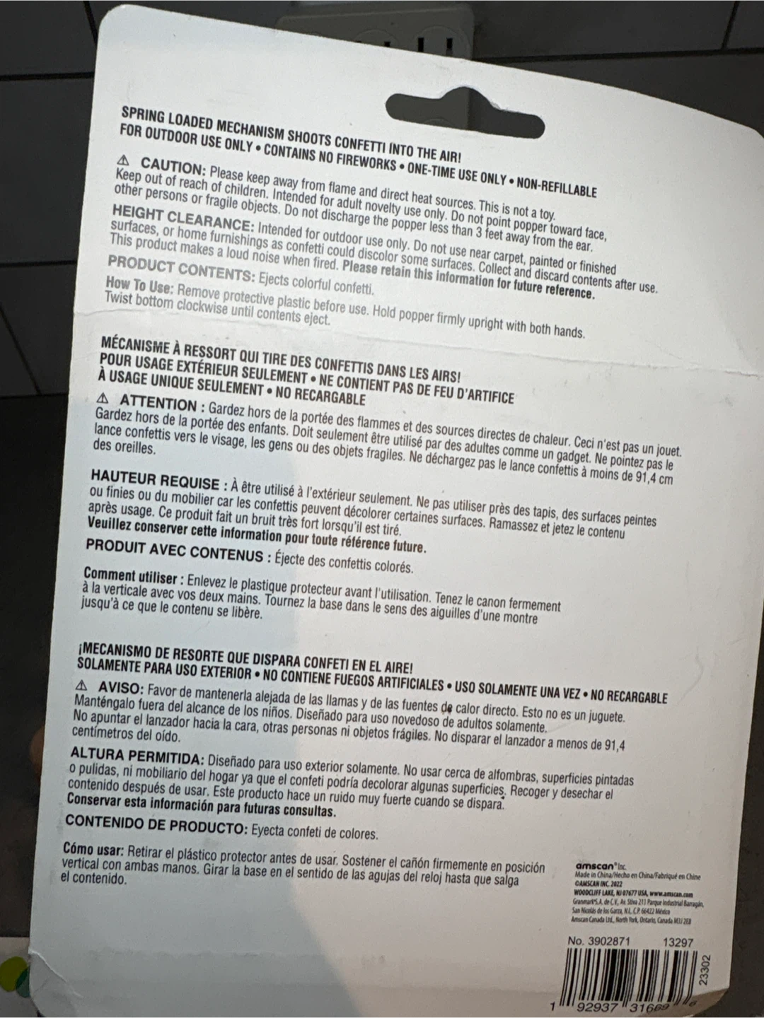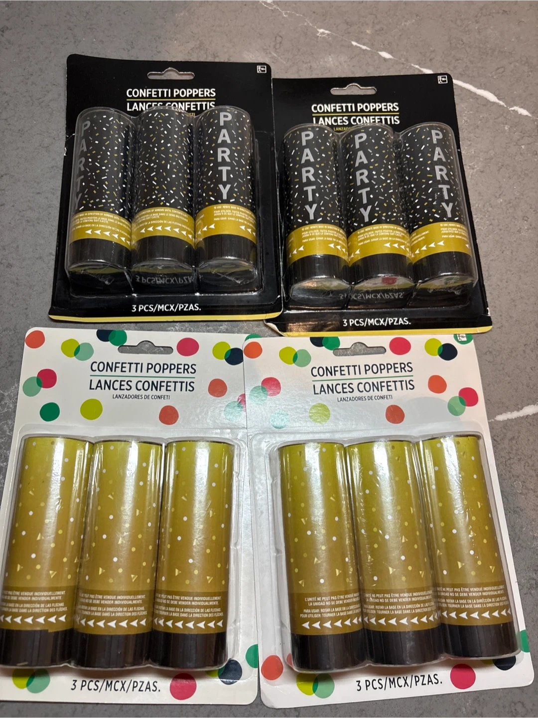 4 NEW packs of confetti poppers, each containing 3 poppers. They are spring loaded and contain confetti….Perfect for parties and special celebrations (**recommended outdoor use only)…**pick up on Chandos Drive in Chicopee area of South Kitchener N2A4H8