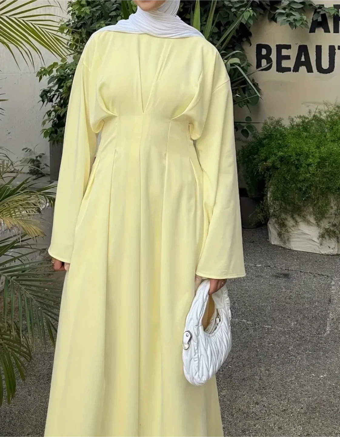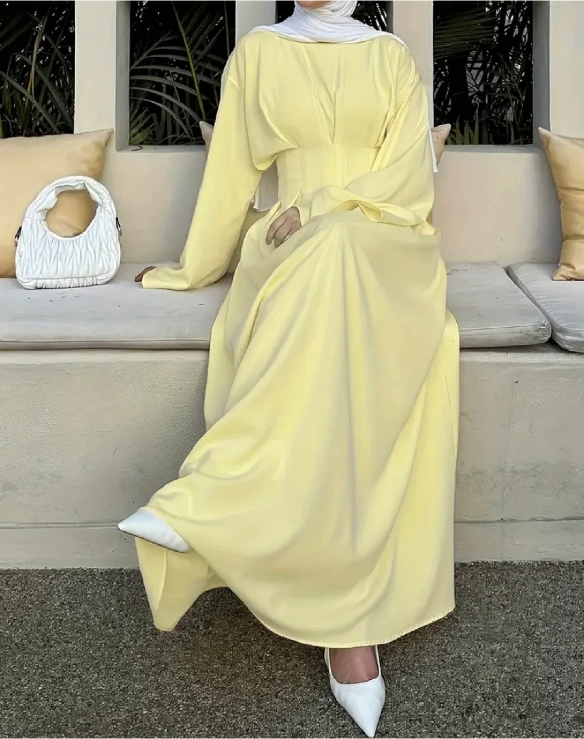 Here's a beautiful long sleeve dress in a lovely yellow color. It's perfect for a special occasion or just feeling elegant!
