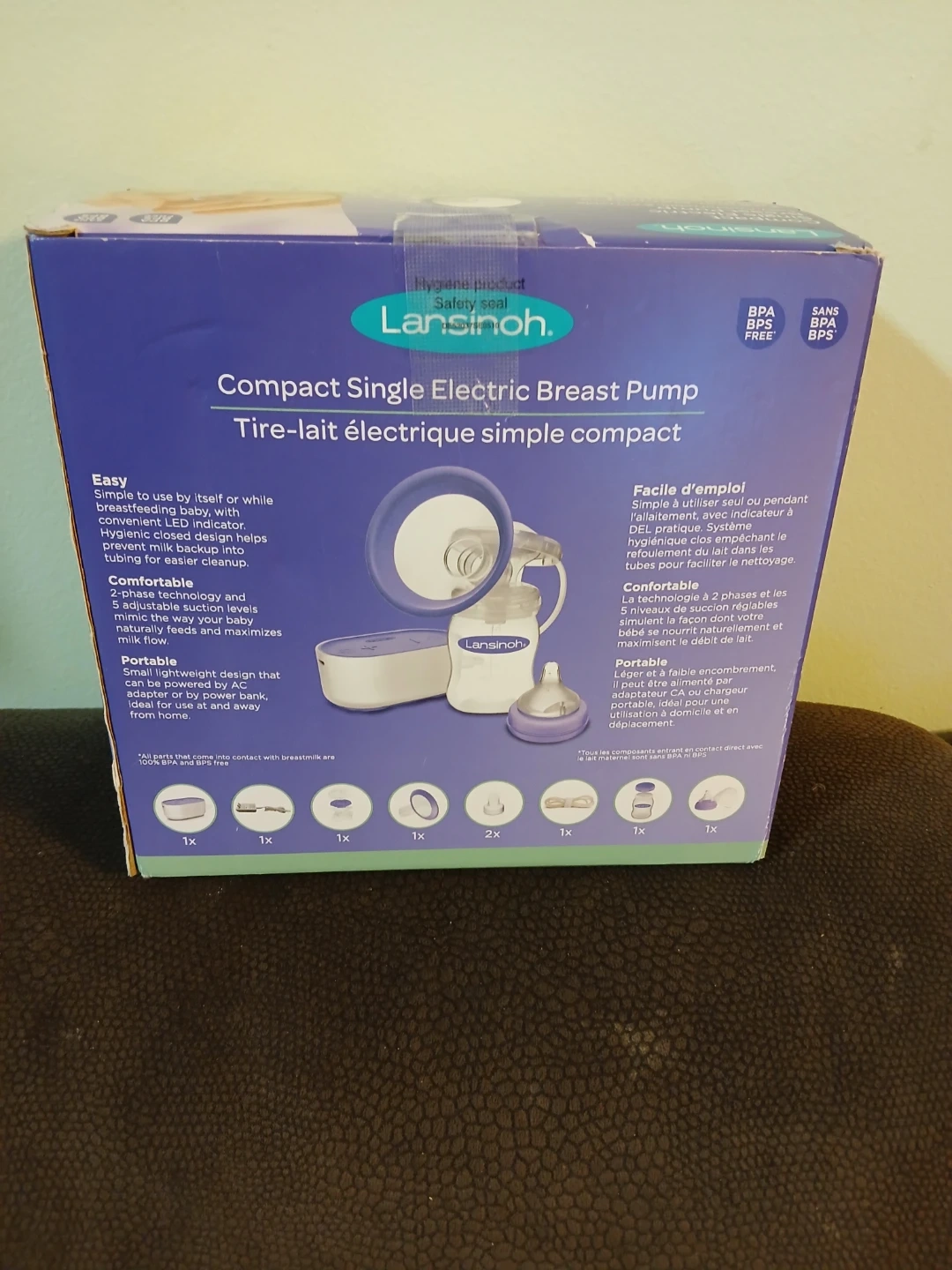 Selling a brand new Lansinoh Compact Single Electric Breast Pump! It's easy to use, comfortable, and portable. The box includes one electric pump and accessories for expressing breastmilk. It features 2-phase technology that mimics the way your baby nurses, and a hygienic closed design to help keep things easy to clean!