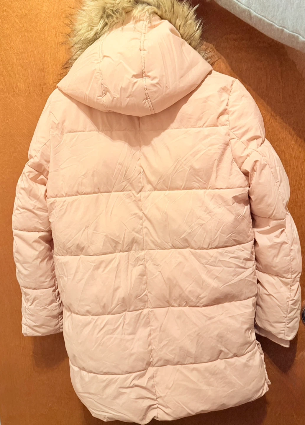 Selling a Sam Edelman puffer jacket in a lovely light pink colour. It's a size 14 and features a faux fur trim on the hood. Perfect for staying warm and stylish! Light pink