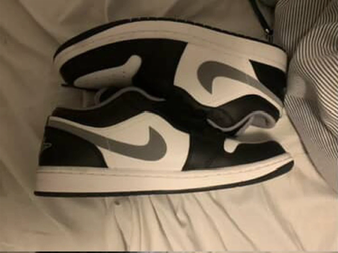Selling a pair of Nike Air Jordan 1 Low shoes in a classic black and white colourway! They are in great shape and come with the original box. can deliver for additional fee 10 - 30 depending on where you live
