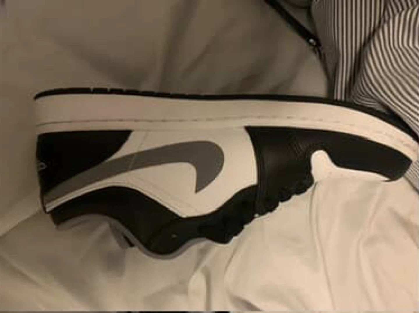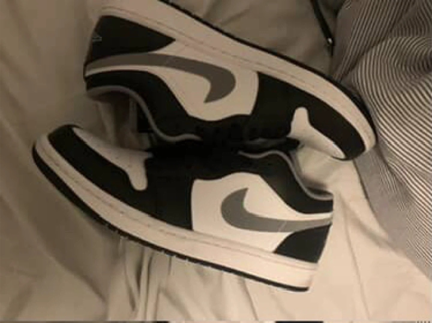 Selling a pair of Nike Air Jordan 1 Low shoes in a classic black and white colourway! They are in great shape and come with the original box. can deliver for additional fee 10 - 30 depending on where you live