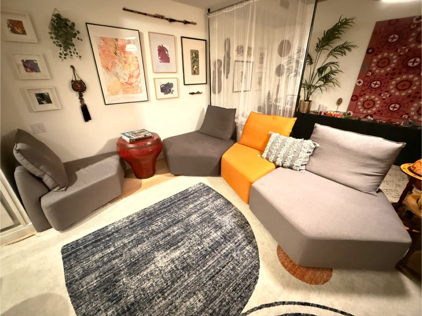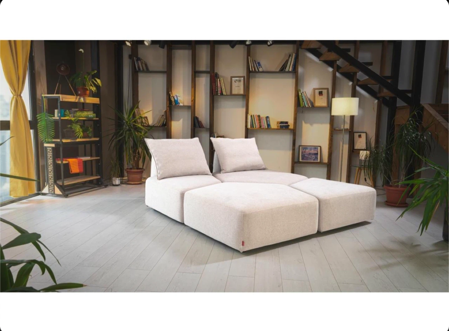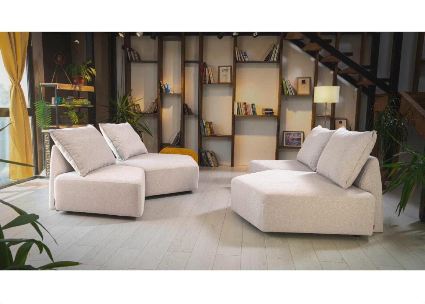 You can arrange the pieces in different configurations to suit your needs. The neutral colours will blend seamlessly with any decor. Perfect for a living room or den! Unlimited amount of super flexible and cool arrangements - from sofa and a chair, to two sofas, to four chair or even a king bed when hosting guests over night. We really have thoroughly enjoyed it. Truly unique statement piece.