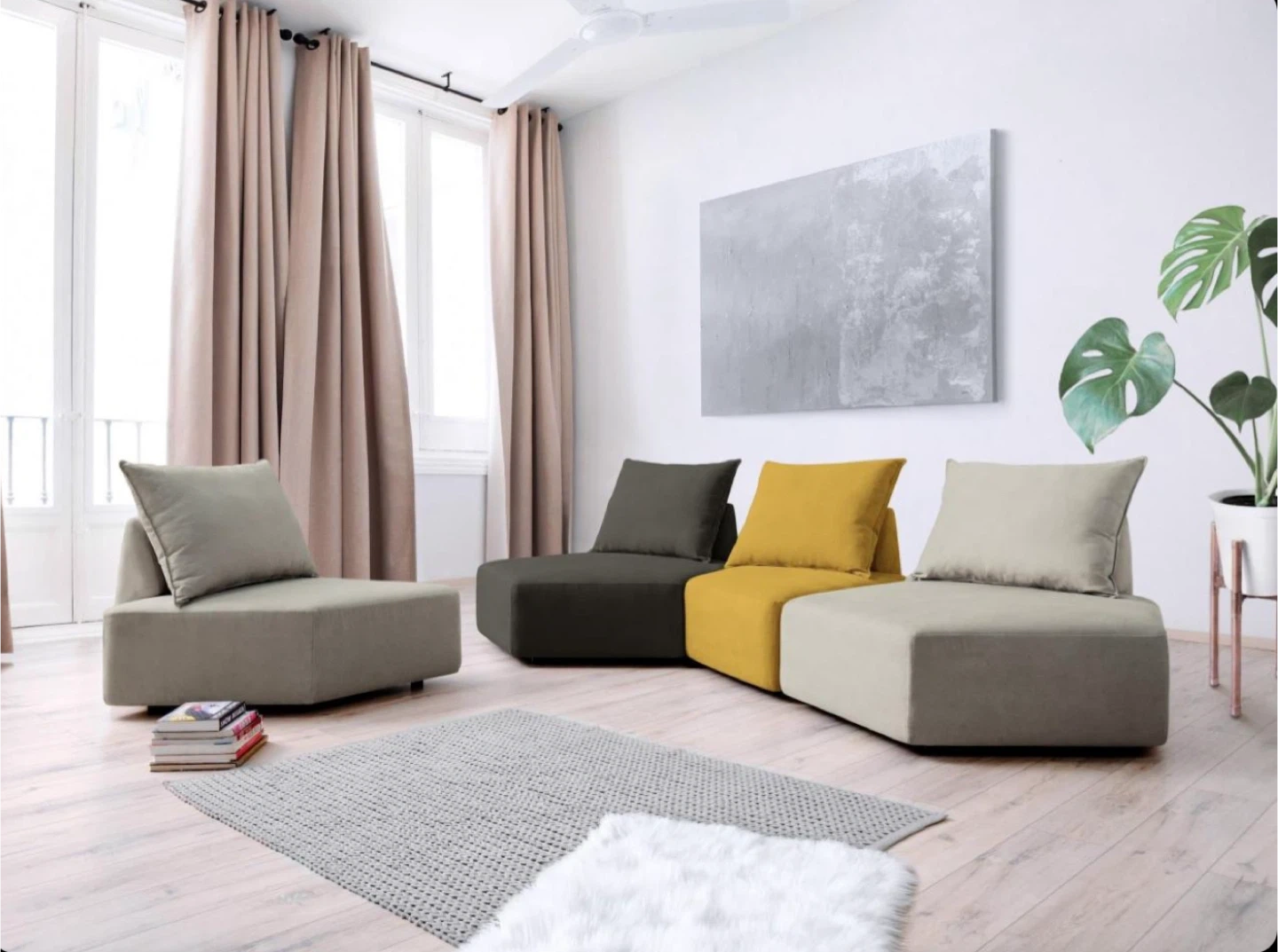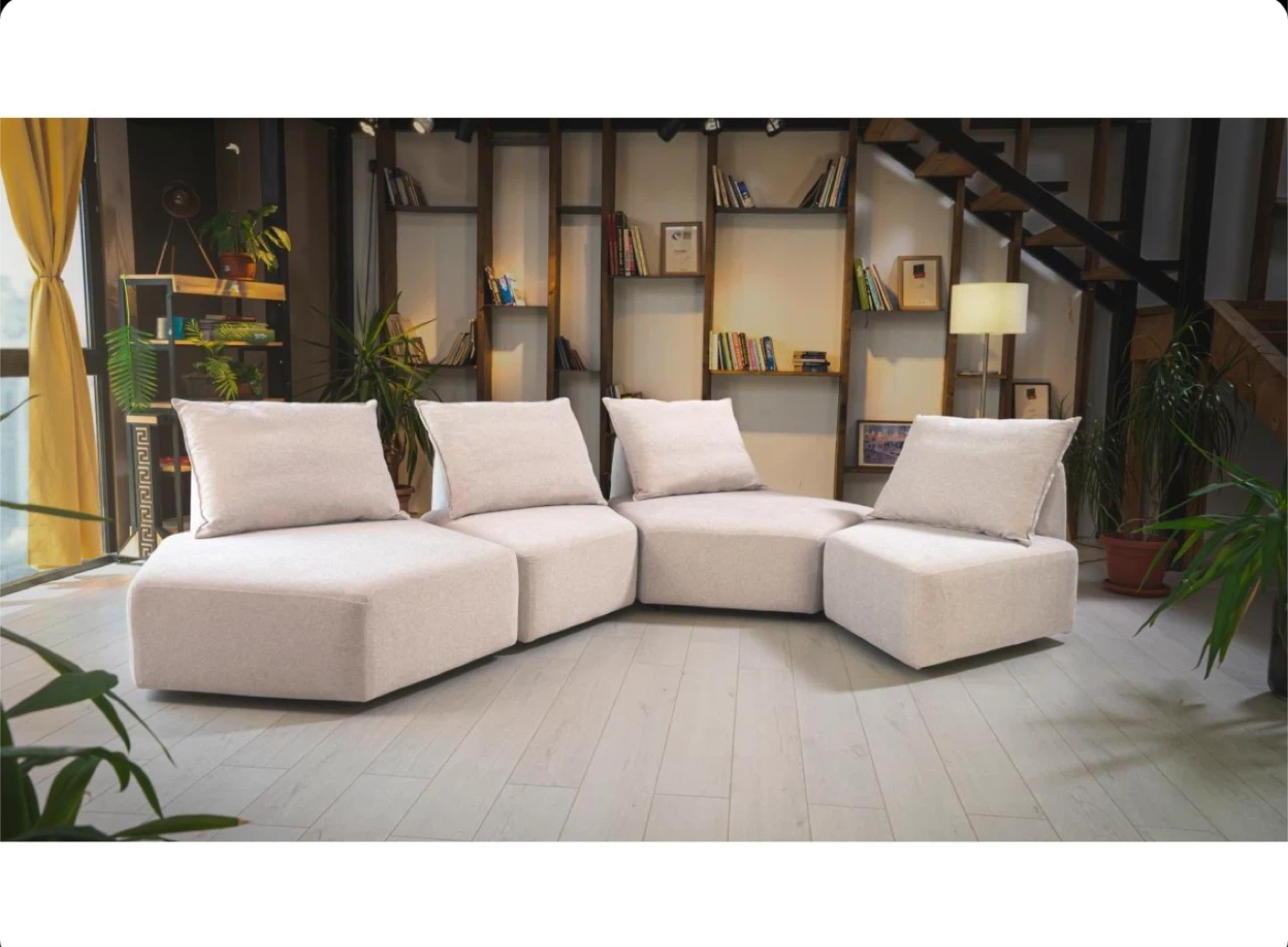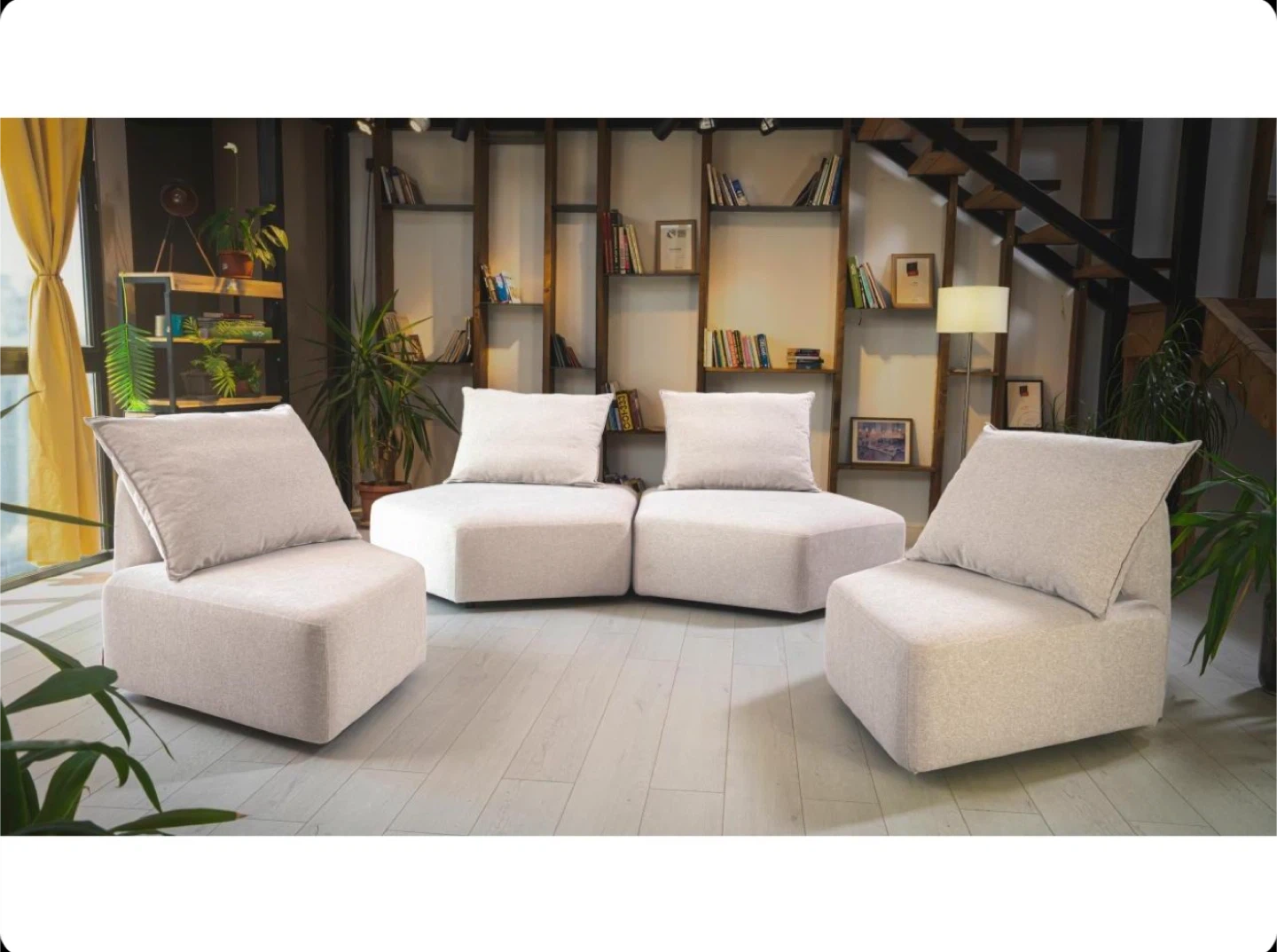 You can arrange the pieces in different configurations to suit your needs. The neutral colours will blend seamlessly with any decor. Perfect for a living room or den! Unlimited amount of super flexible and cool arrangements - from sofa and a chair, to two sofas, to four chair or even a king bed when hosting guests over night. We really have thoroughly enjoyed it. Truly unique statement piece.