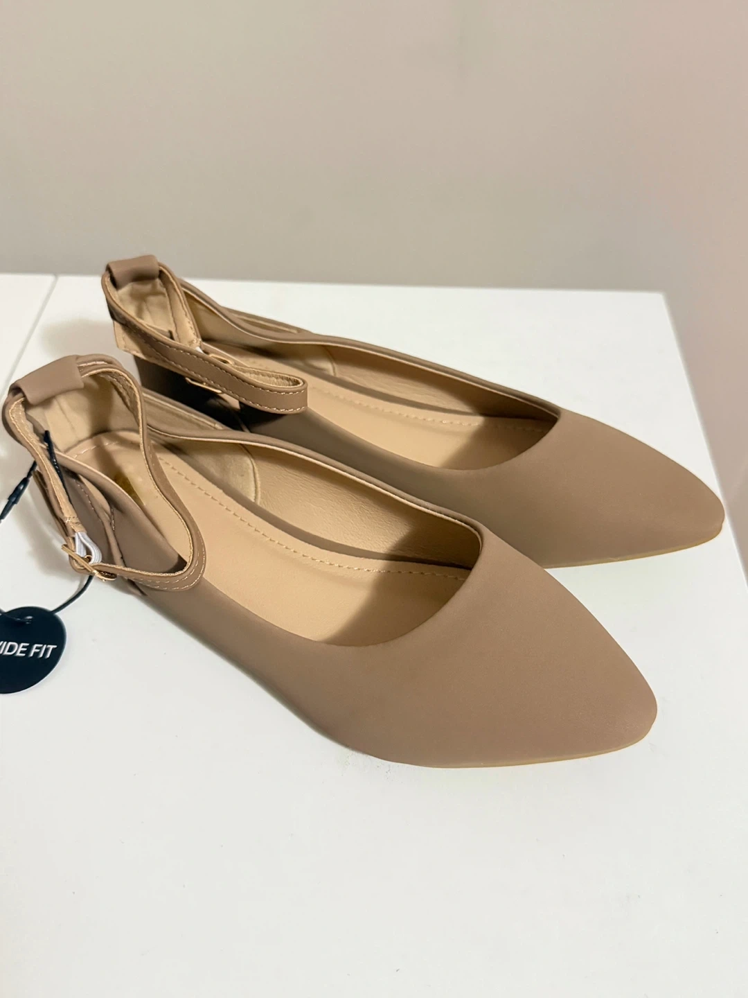 Beige Pointed-Toe Flat Shoes with Ankle Strap – Size US 7