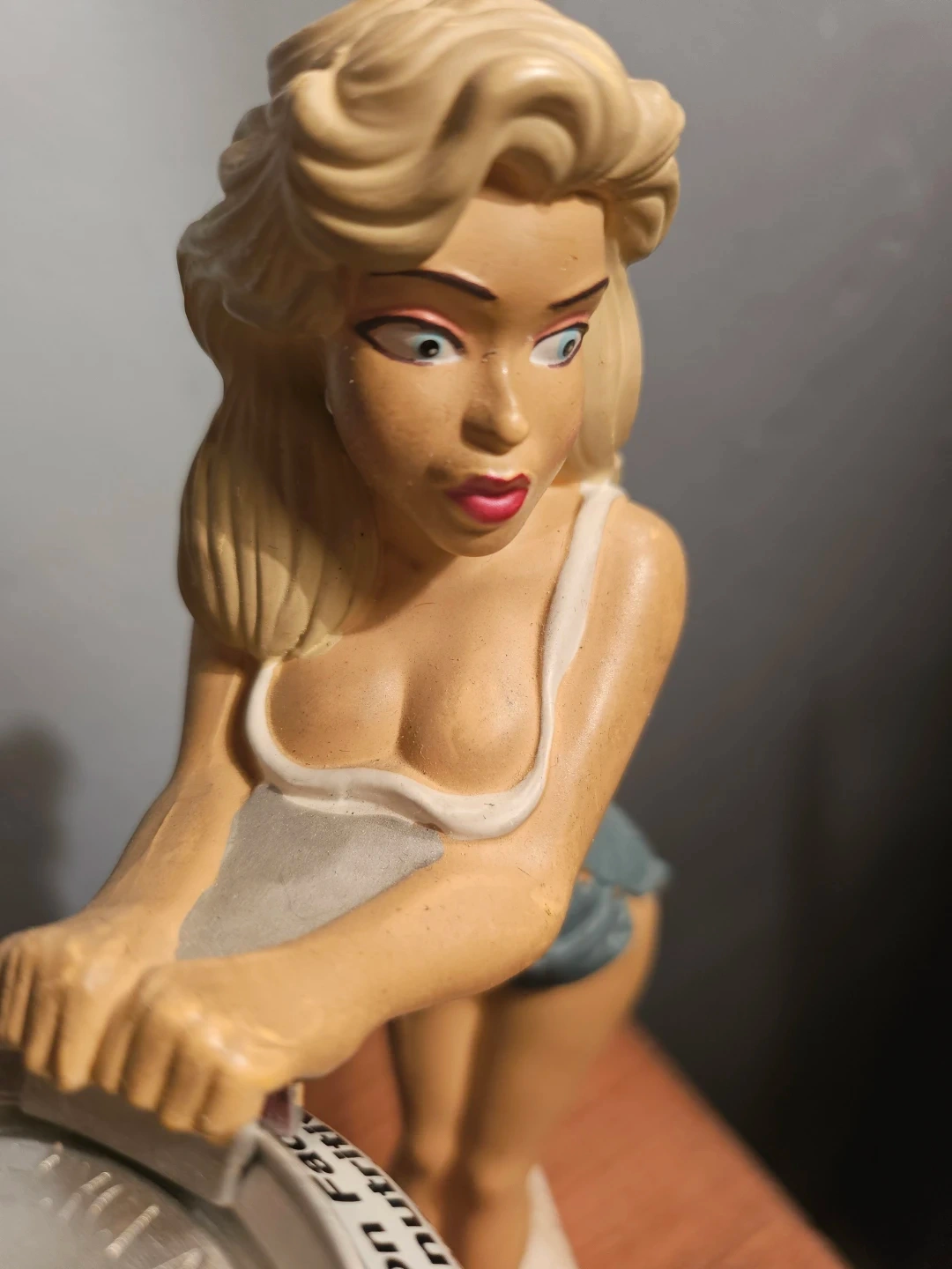 Vintage pin-up style figurine can holder compatible with any 350 mL beverage can. Ideal for collectors or anyone looking to add a bold, nostalgic touch to their décor.