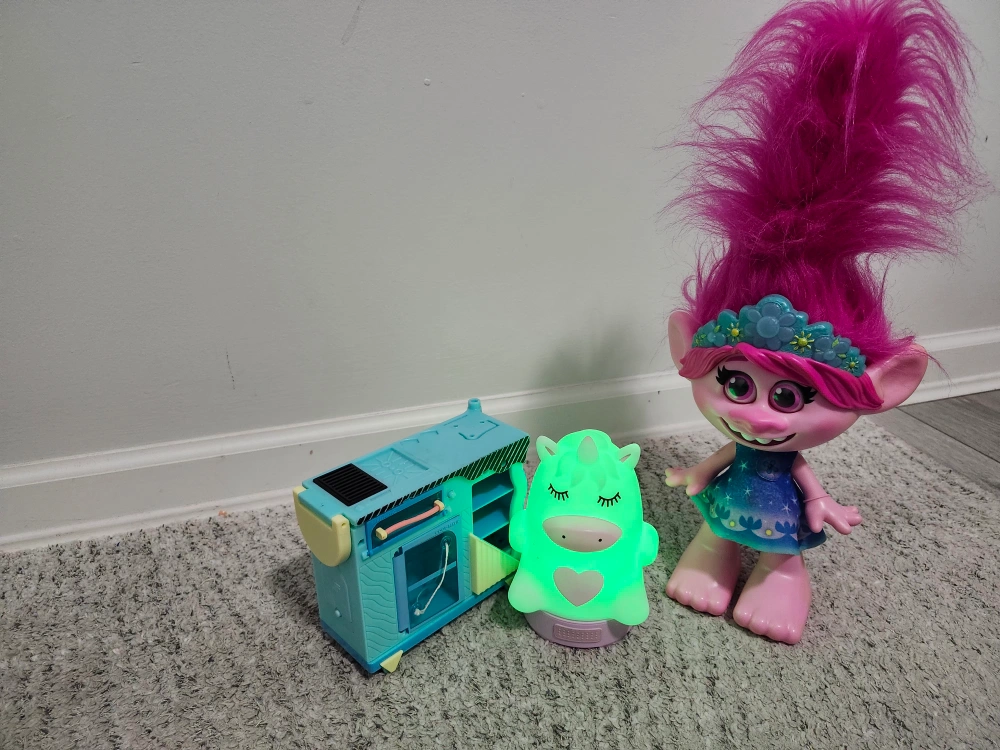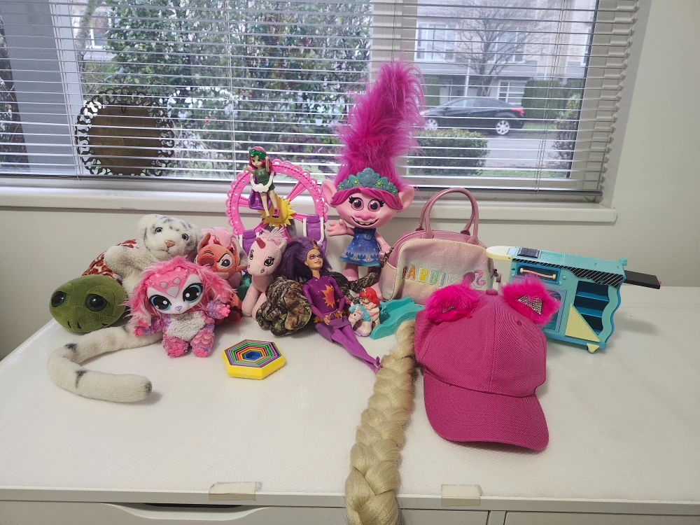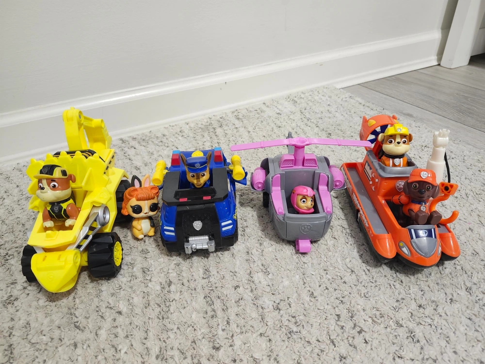 Selling a mixed lot of toys and books! Includes a Trolls doll, Paw Patrol vehicles, and a selection of children's books. Great for kids!