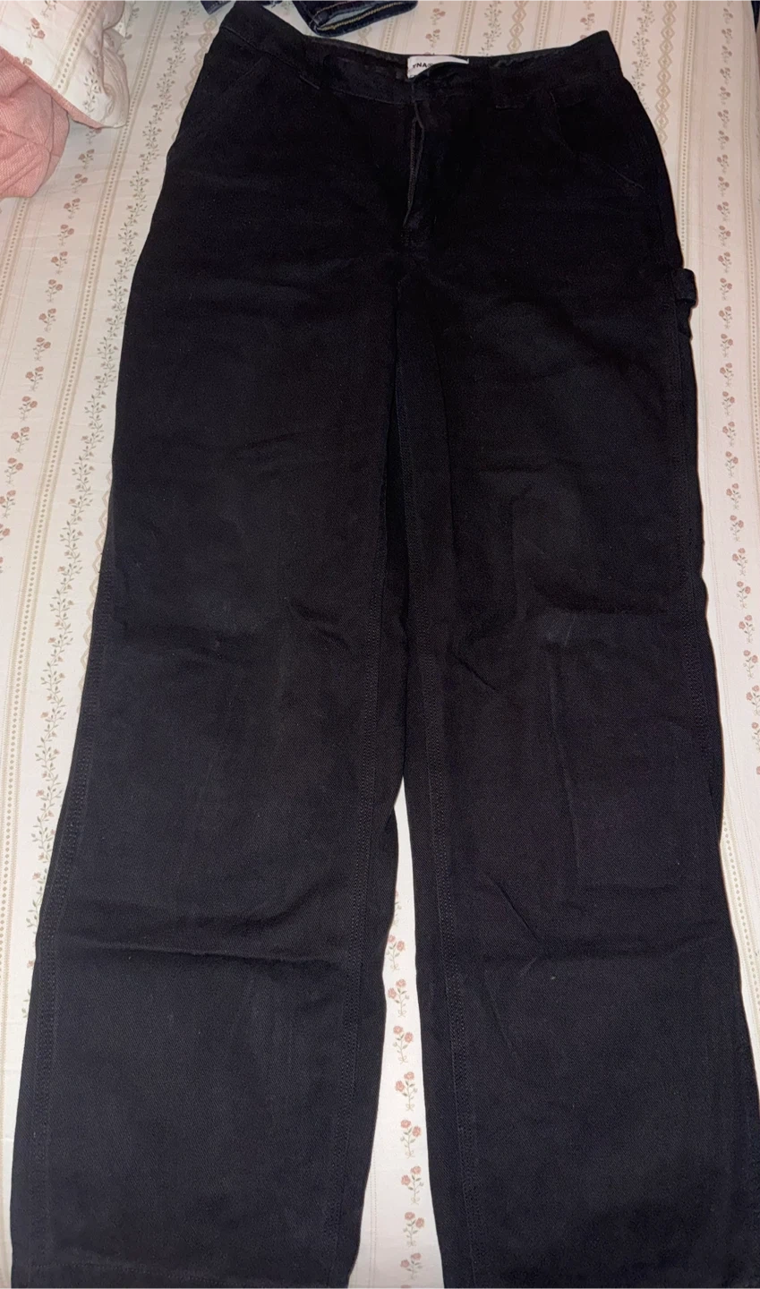 Selling a pair of TNA carpenter pants in black. They're in great condition and ready for a new owner! These pants are super comfy and stylish