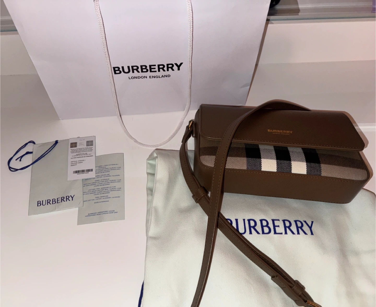 Selling a Burberry crossbody bag in great condition! It's a stylish and versatile bag that's perfect for everyday use. Comes with the original dust bag and shopping bag. Original price was $1390 and it comes with all authentication cards.