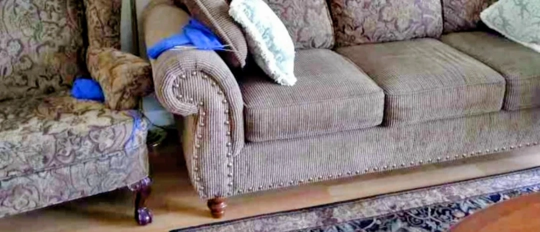 Selling a comfy sofa and armchair set! The pieces are upholstered in a neutral brown fabric with a subtle striped pattern. The sofa has padded cushions and decorative nailhead trim. The armchair complements the sofa with matching upholstery and wooden legs. They would be a great addition to any living room! Asap needed to remove..pick up in the lobby in guildford location..please message. No decent offer will be denied if serious about pick up.