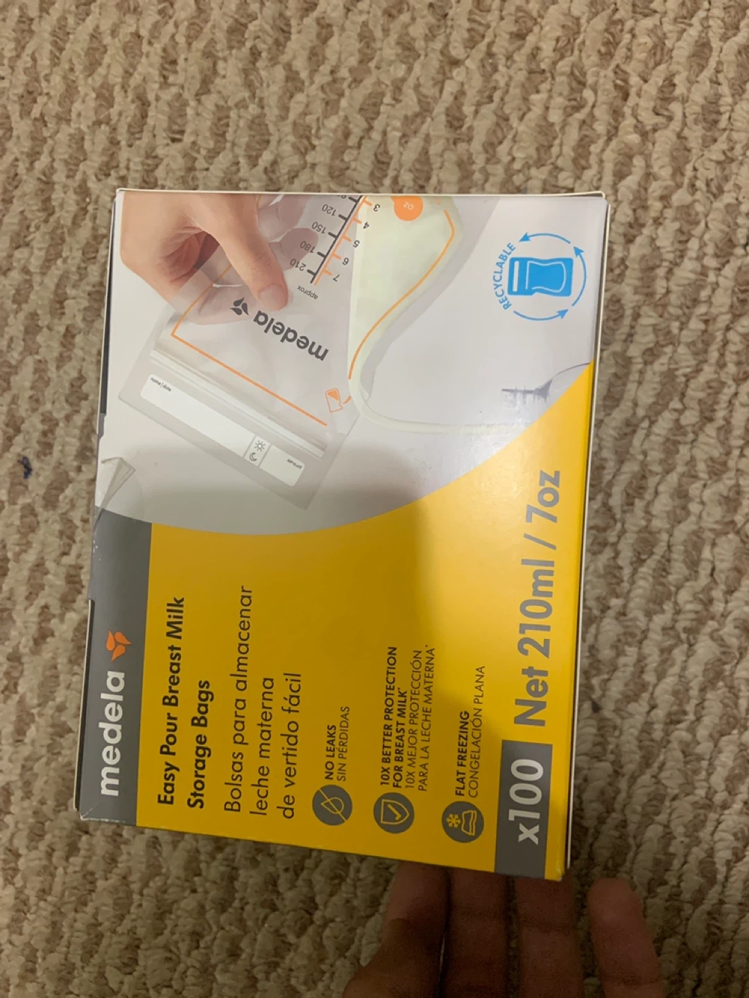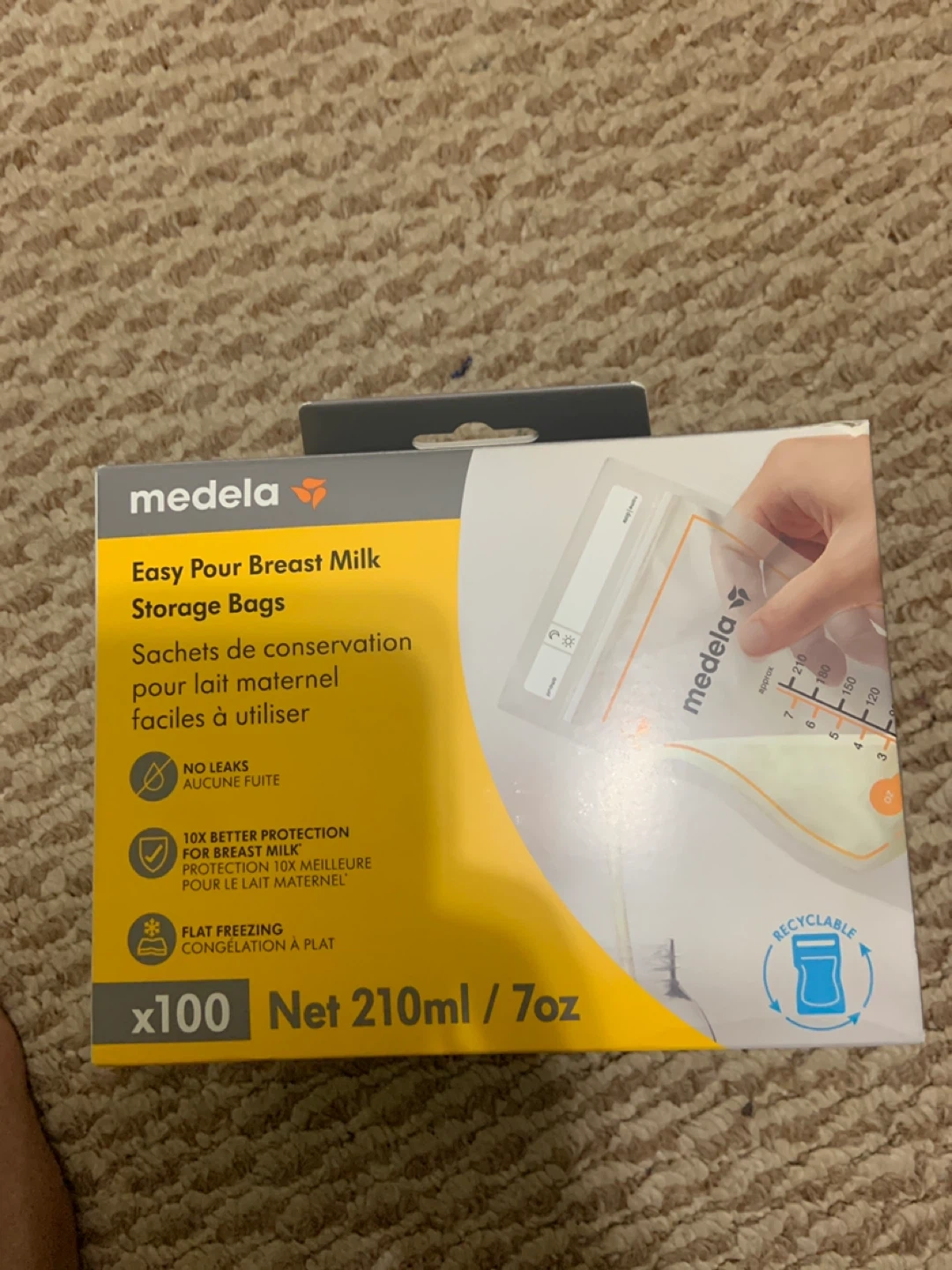 I'm selling a brand new box of Medela Easy Pour Breast Milk Storage Bags! They're designed for easy pouring and have 10x better protection for breast milk. Each bag holds 210ml / 7oz and the box contains 100 bags. They're also designed for flat freezing!