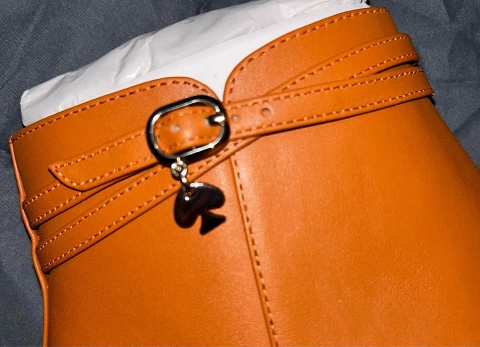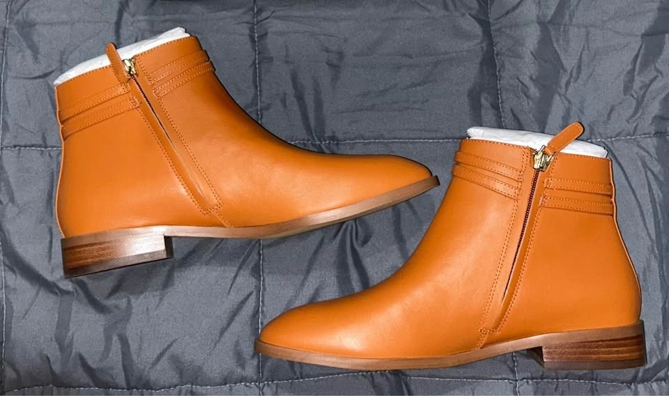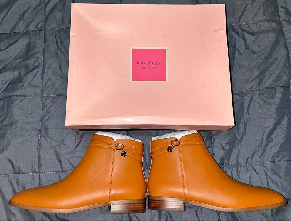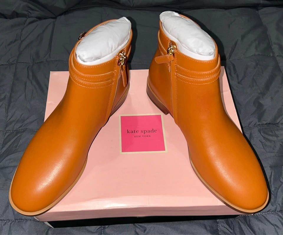 Gorgeous brand new in box, Kate Spade leather Stable bootie in brown “hot cider” color. Side zipper. One-inch block heel. Cute Kate Spade metal accent on buckle. New; never worn. Original MSRP $150. Pick up on the upper west side of Manhattan.