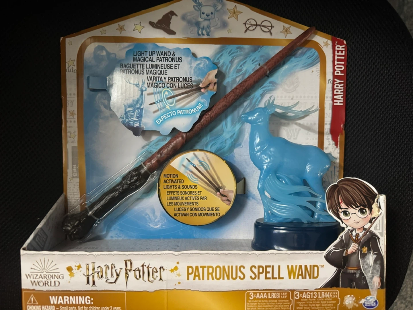 Selling a brand new Harry Potter Patronus Spell Wand, still in its original box! The wand lights up and makes magical Patronus sounds. It's motion activated, so you can practice your spells. A fun gift for any Harry Potter fan!