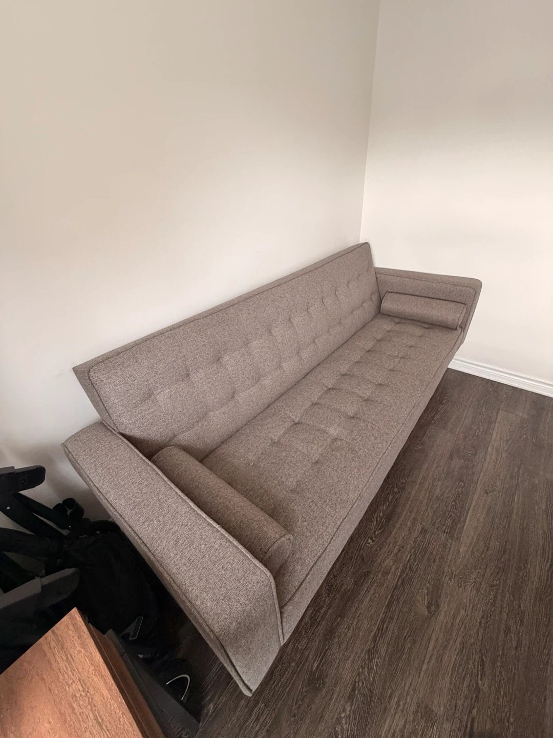 Selling a Structube Jean sofa bed in excellent condition. It easily converts into a bed when unfolded, making it very practical and compact. Perfect for hosting guests in small spaces.